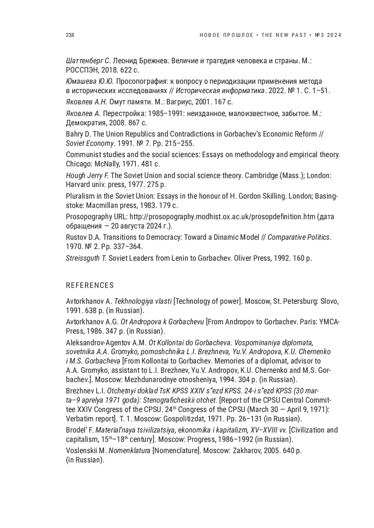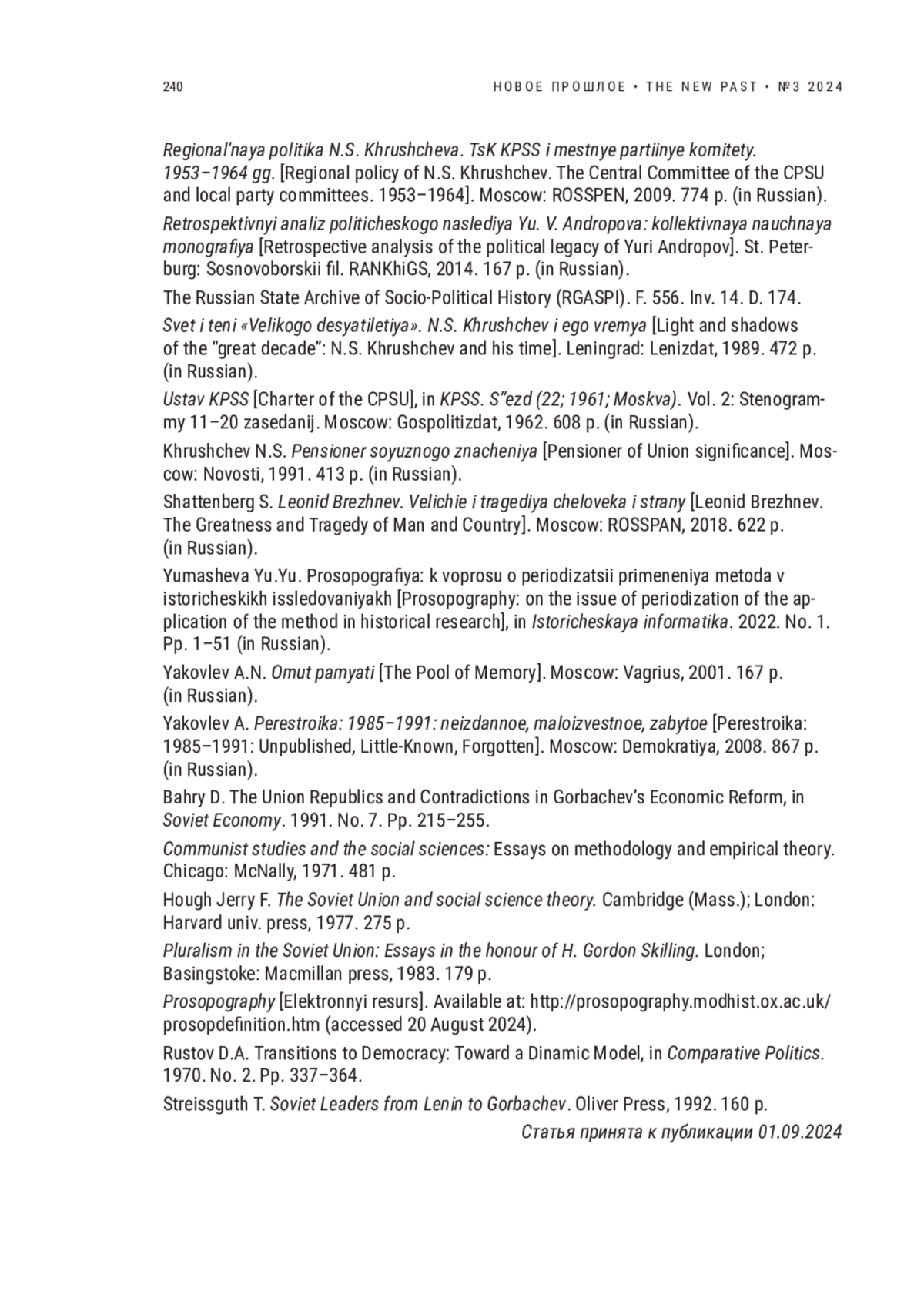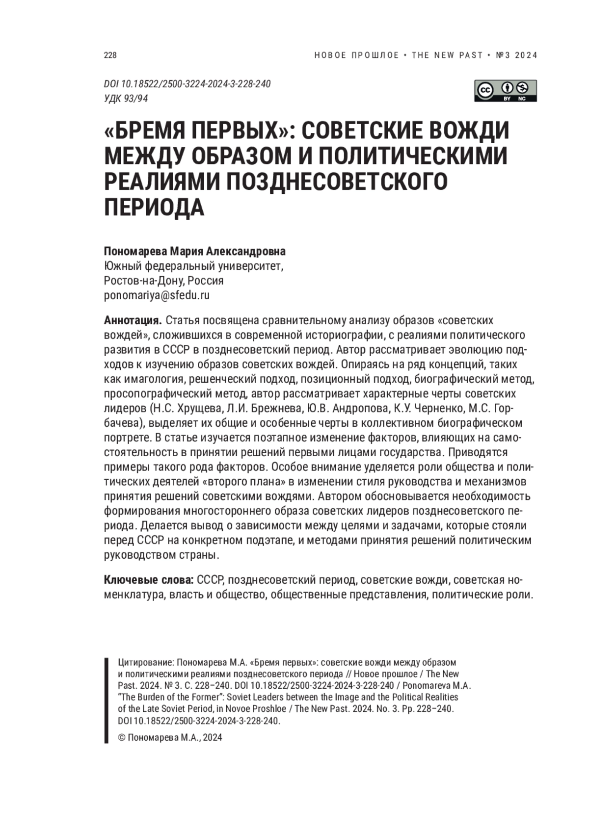 ПОНОМАРЕВА М. А. "БРЕМЯ ПЕРВЫХ": СОВЕТСКИЕ ВОЖДИ МЕЖДУ ОБРАЗОМ И ПОЛИТИЧЕСКИМИ РЕАЛИЯМИ ПОЗДНЕСОВЕТСКОГО ПЕРИОДА // НОВОЕ ПРОШЛОЕ. 2024. № 3