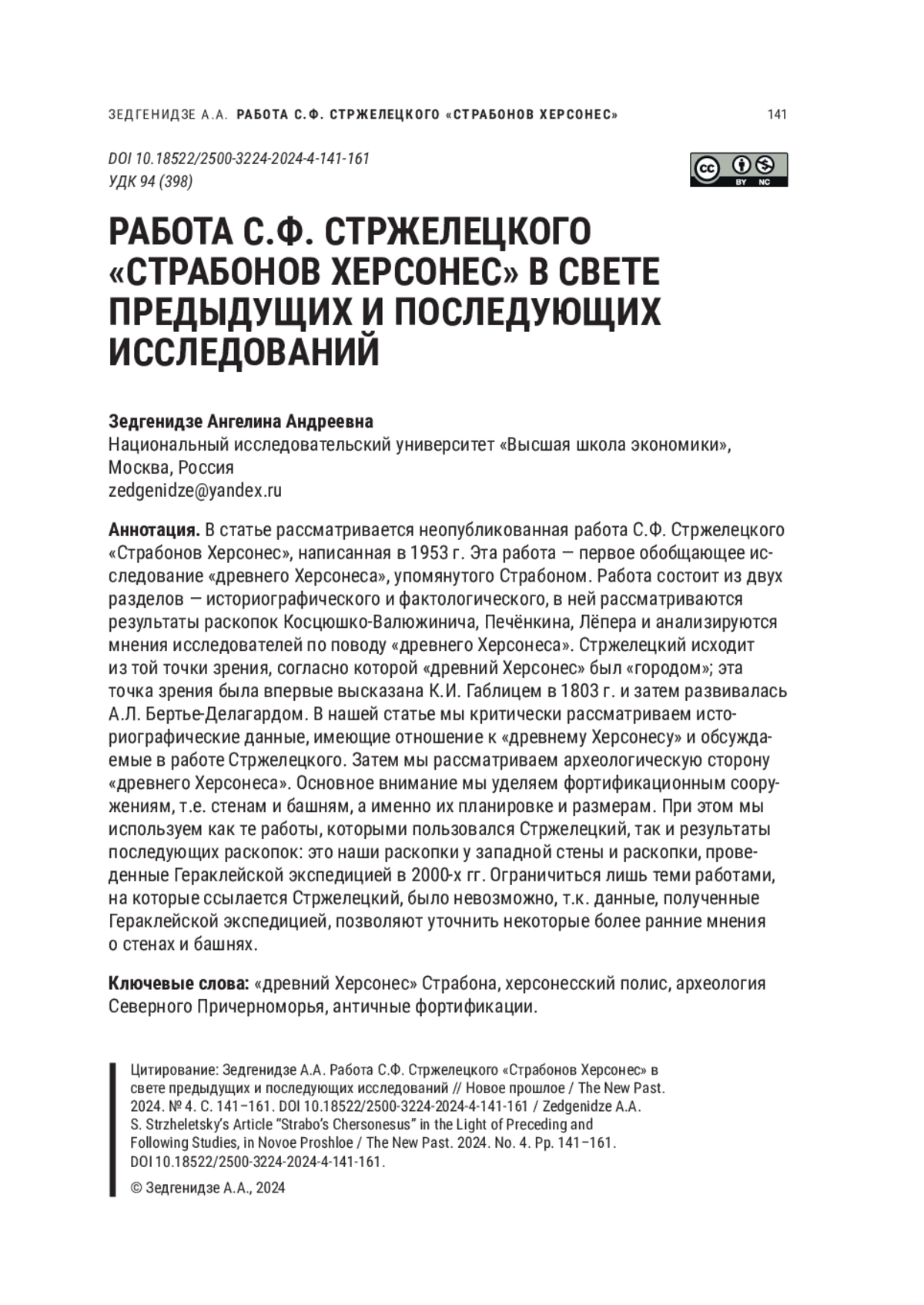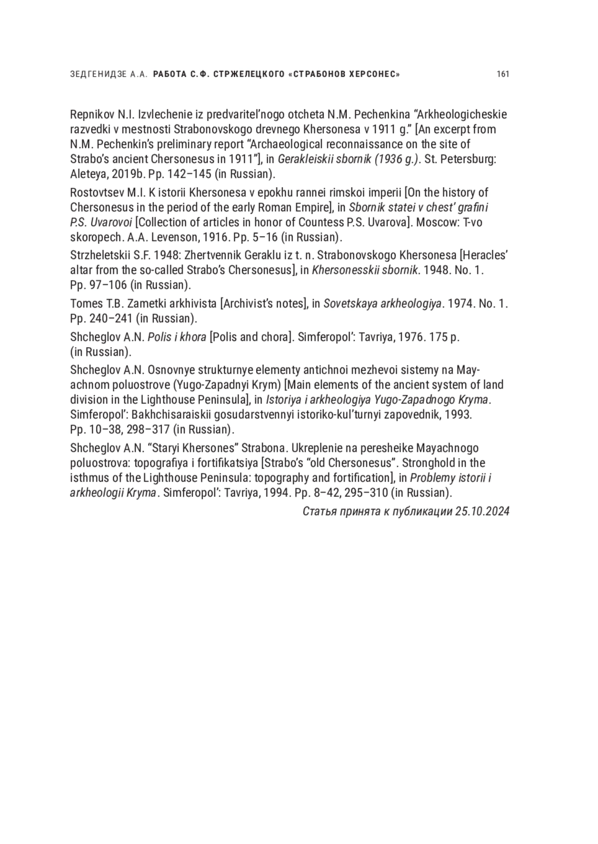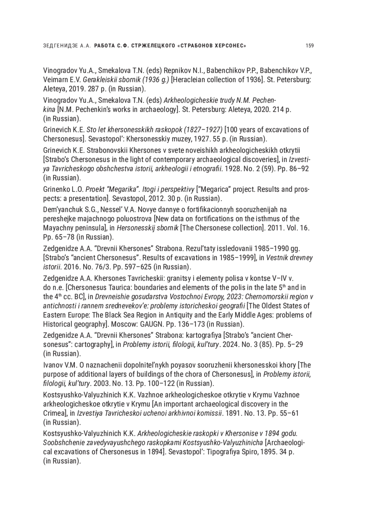 10. Зедгенидзе А.А. “Древний Херсонес” Страбона. Результаты исследований 1985-1990 гг. // Вестник древней истории. 2016. № 76/3. С. 597-625. EDN: WLSGAR
