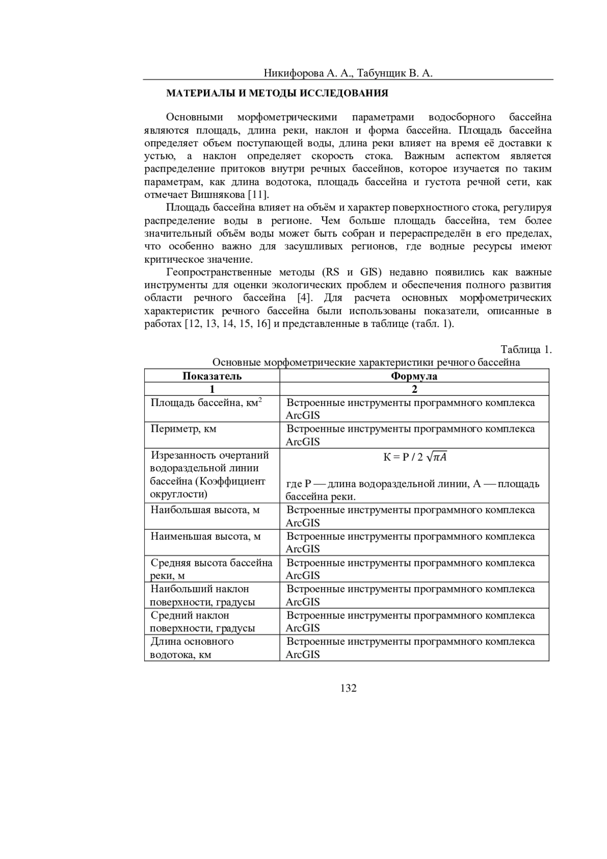 Реки играют большую роль в природном, хозяйственном и экологическом комплексах [1, 2, 3]. Морфометрические характеристики водосборных бассейнов играют ключевую роль в понимании гидрологических и экологических процессов [4].