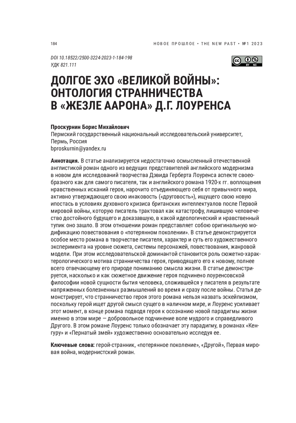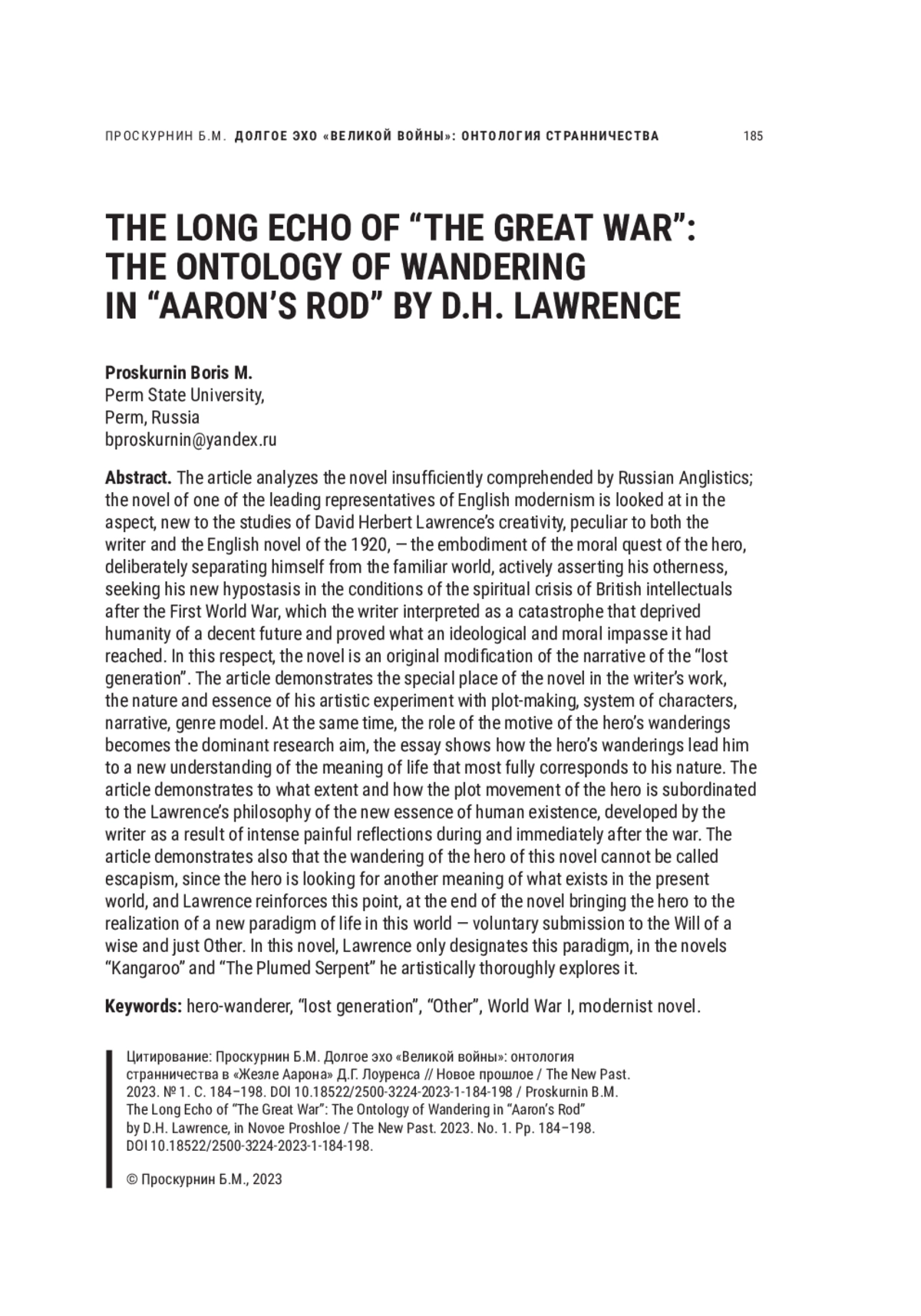 19. Lawrence D.H. Aaron’s Rod // The Project Gutenberg EBook. URL: www.gutenberg.org (дата обращения - 30 ноября 2022 г.).