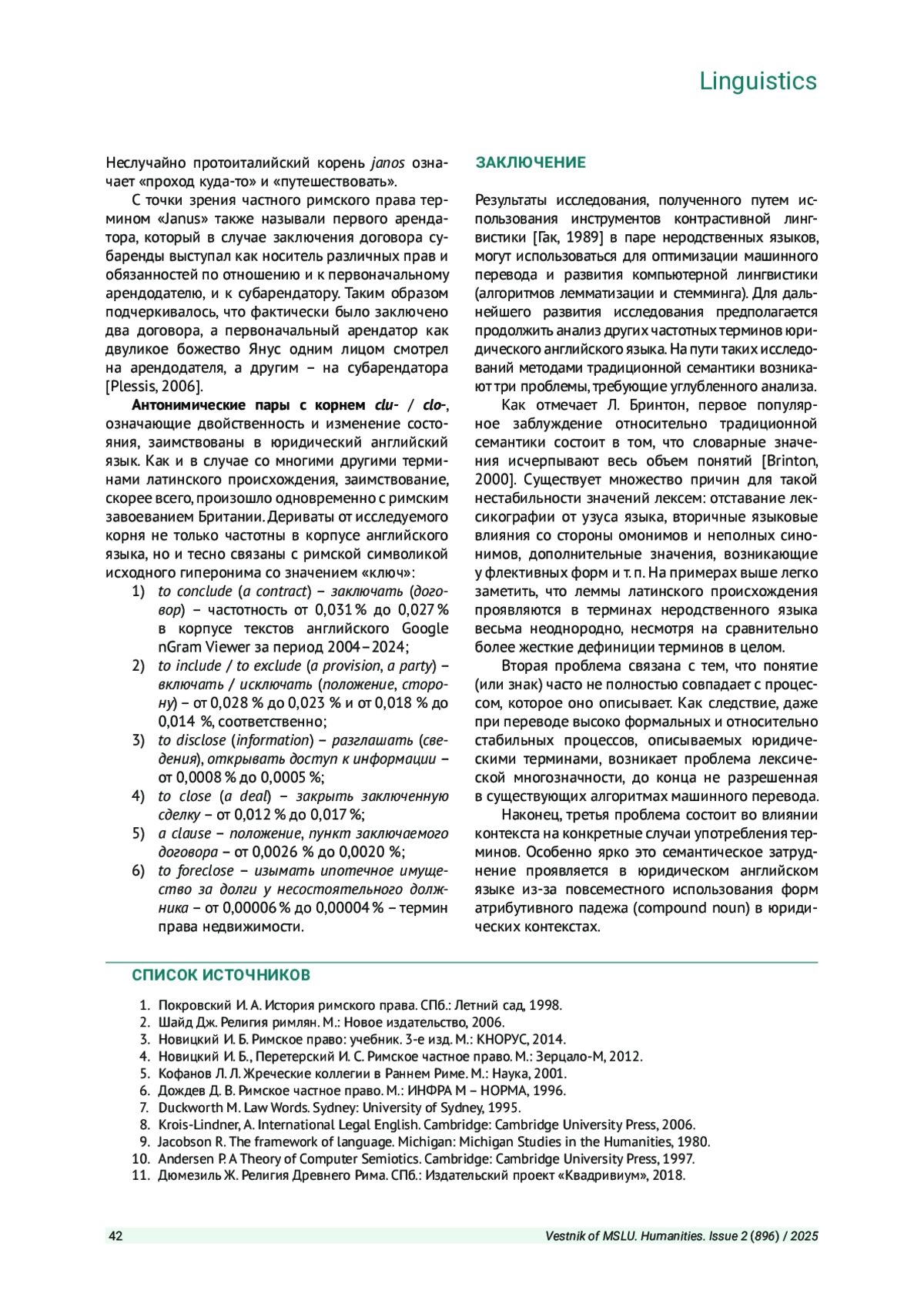 19. Plessis P. Janus in the Roman Law of Urban Lease // Historia: Zeitschrift für Alte Geschichte. 2006. № 55. P. 48-63.