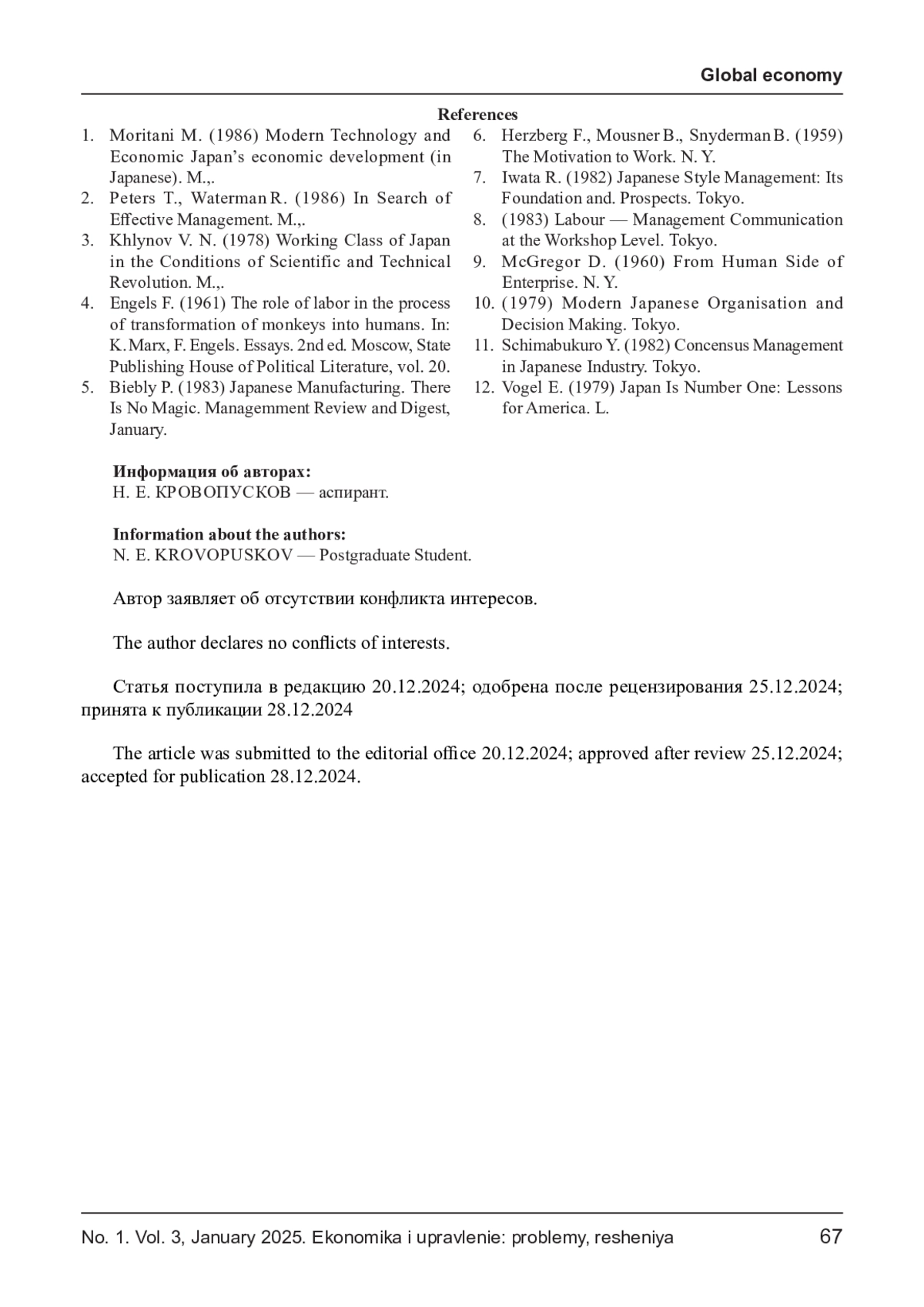 7. Iwata R. (1982) Japanese Style Management: Its Foundation and. Prospects. Tokyo.