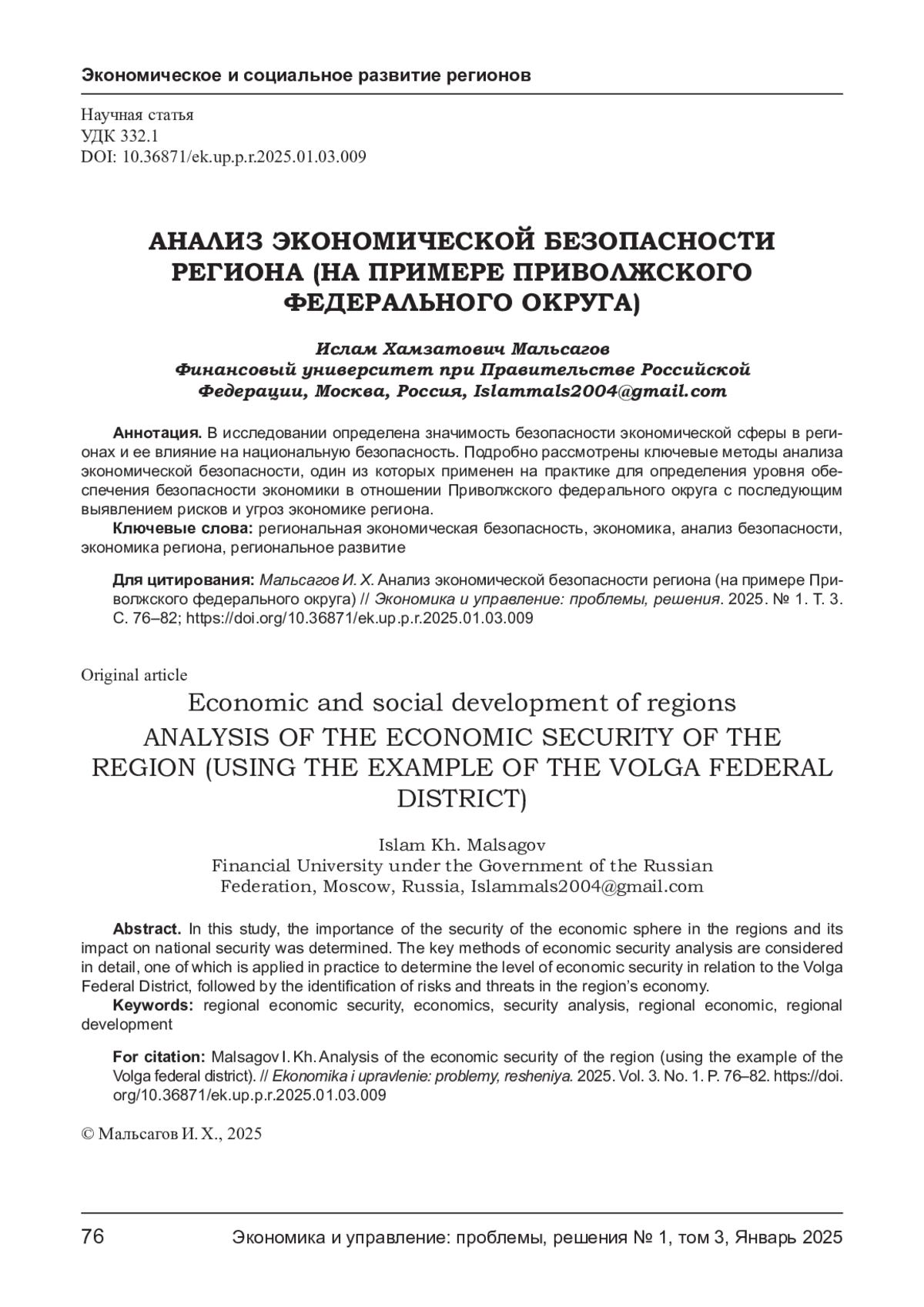 6. Рахматуллоева М. У. Угрозы экономической безопасности региона и пути их преодоления //Управленческий учет. 2021. № 11. С. 492-500. EDN: VUSTCP
