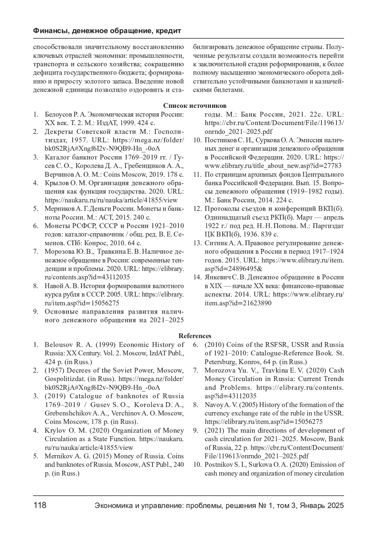 14. Янкевич С. В. Денежное обращение в России в XIX - начале XX века: финансово-правовые аспекты. 2014. URL: https://www.elibrary.ru/item.asp?id=21623890.
