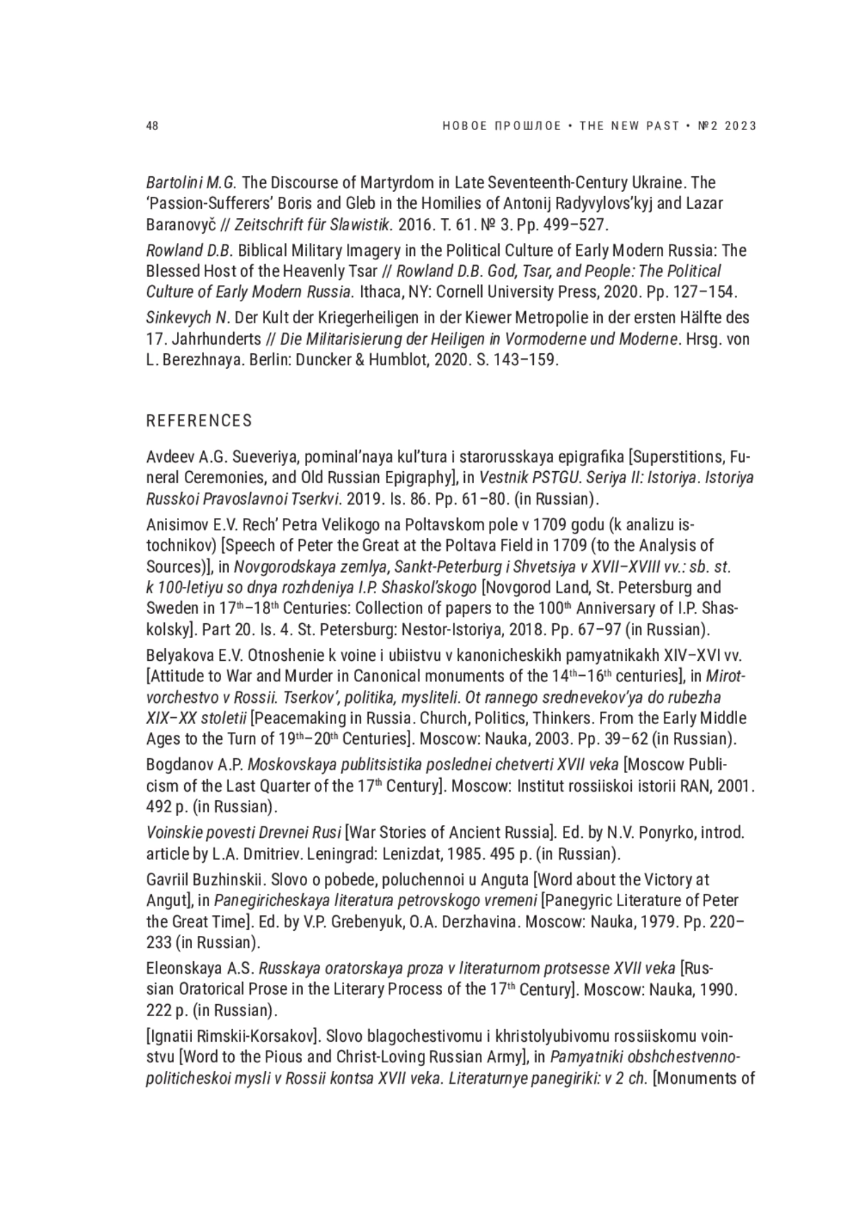 16. Попович А.И. Диктат власти и путь к личному выбору: идея жертвы за веру в России раннего Нового времени // Диалог со временем. 2020. Вып. 73. С. 168-180. DOI: 10.21267/AQUILO.2020.73.73.007 EDN: DRSSYI