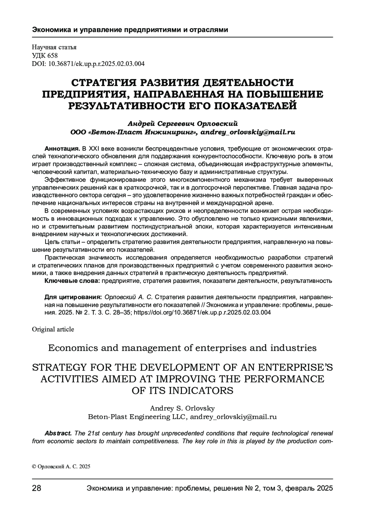 Цель статьи - определить стратегию развития деятельности предприятия, направленную на повышение результативности его показателей. Практическая значимость исследования определяется необходимостью разработки стратегий и стратегических планов для производственных предприятий с учетом современного развития экономики, а также внедрения данных стратегий в практическую деятельность предприятий.