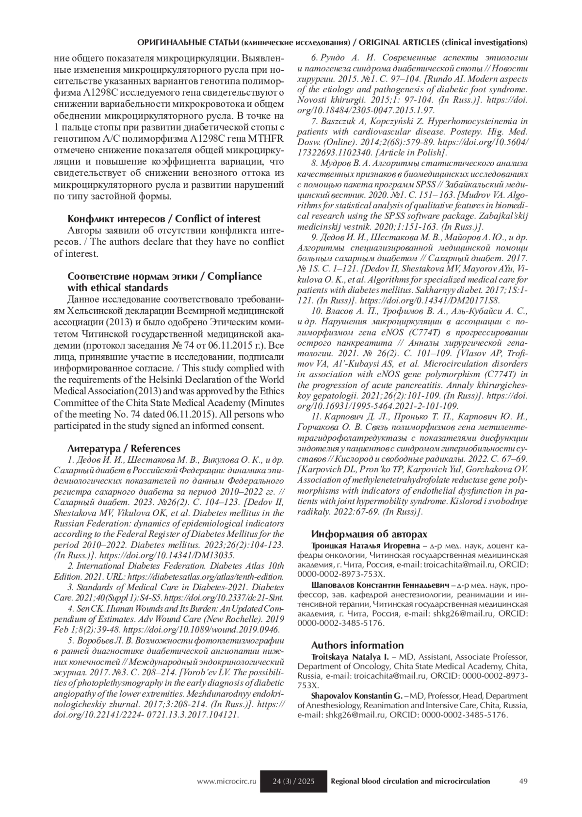 10. Власов А. П., Трофимов В. А., Аль-Кубайси А. С., и др. Нарушения микроциркуляции в ассоциации с полиморфизмом гена eNOS (C774T) в прогрессировании острого панкреатита // Анналы хирургической гепатологии. 2021. № 26(2). С. 101-109.