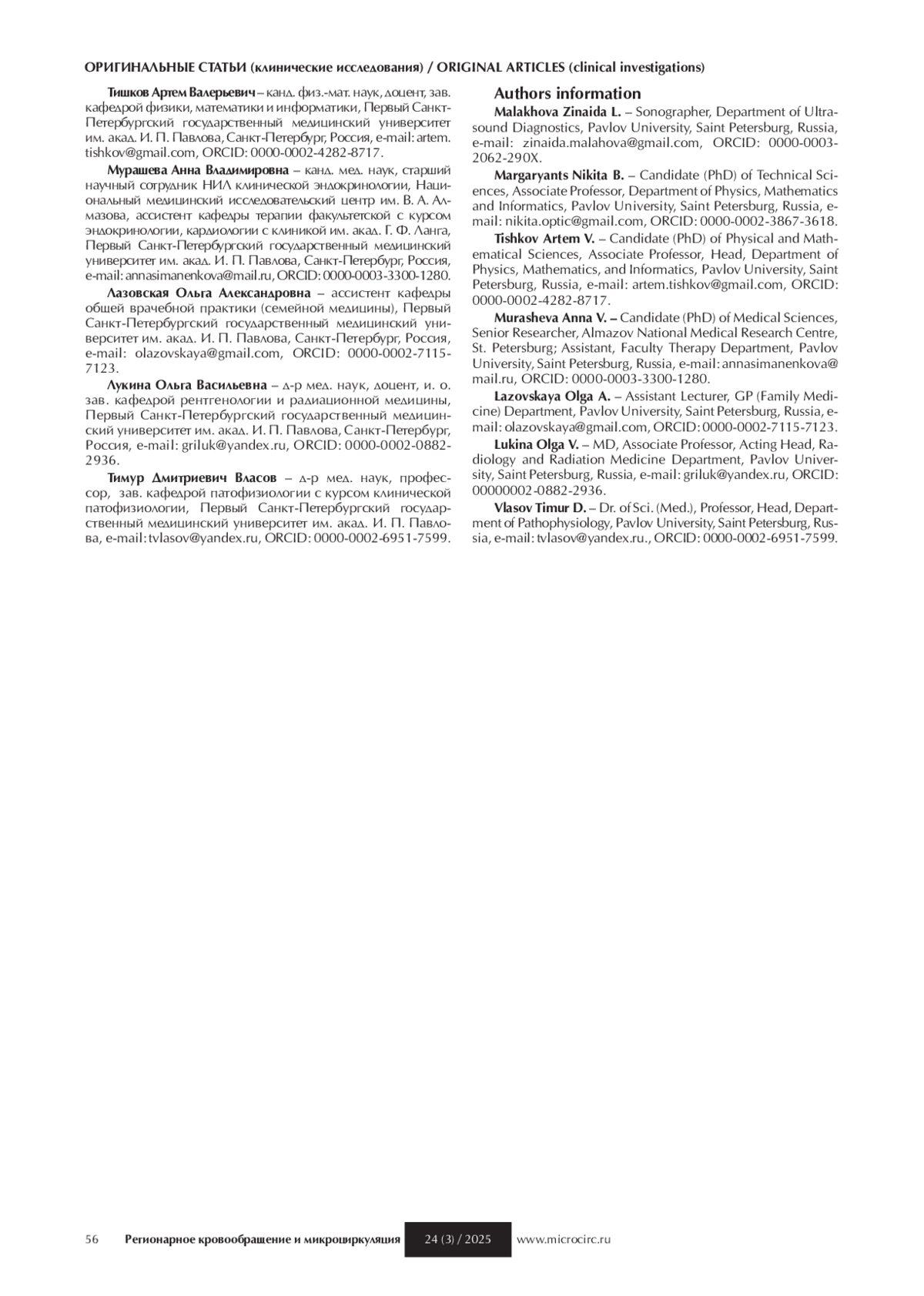 11. Малахова З. Л., Амосов В. И., Власов Т. Д. Плюсы и минусы поток-зависимой вазодилатации плечевой артерии // Клиническая патофизиология. 2024. Т. 30, № S2. С. 78.