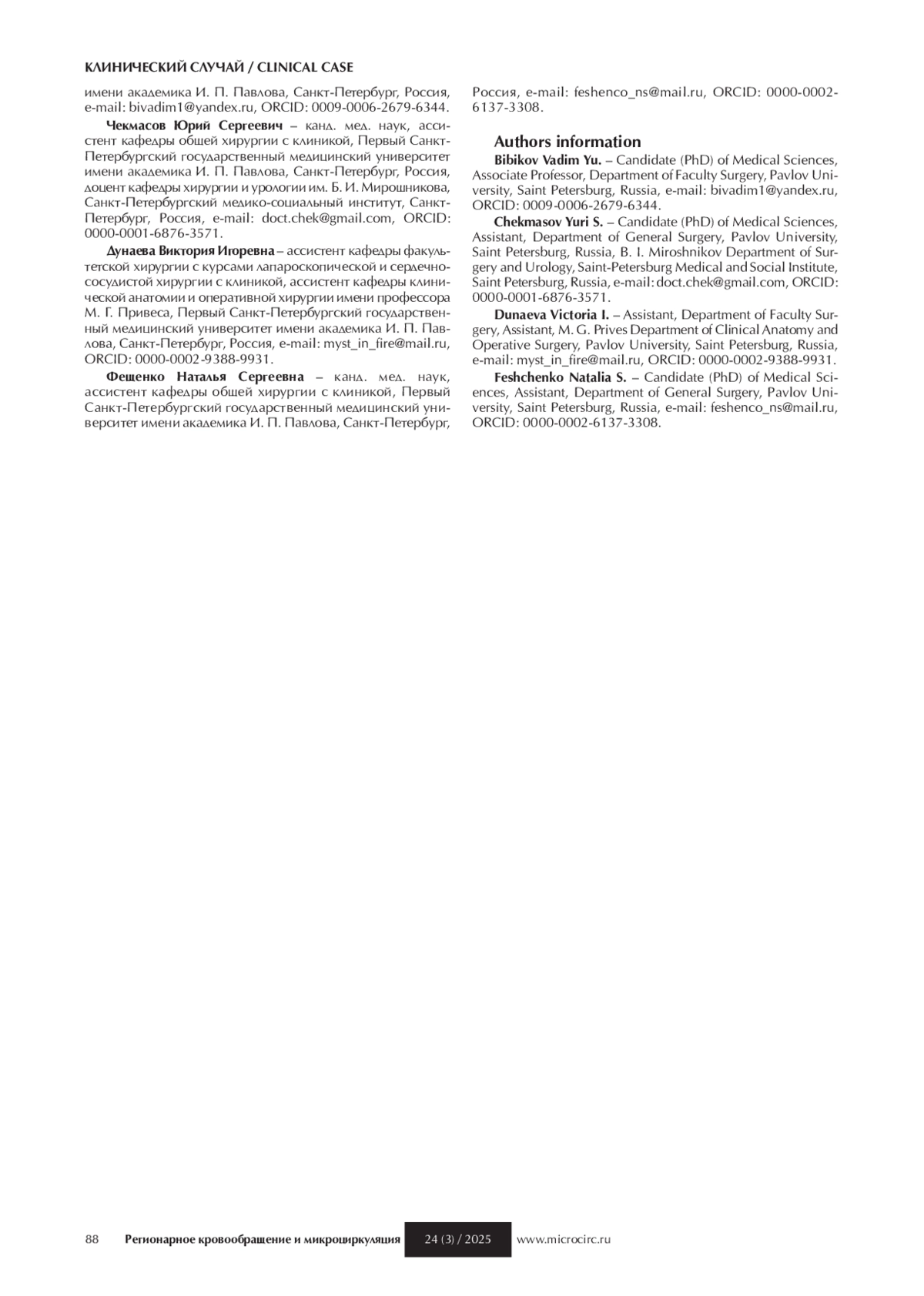 Введение. Многоуровневые атеросклеротические поражения периферических артерий являются основной причиной декомпенсации кровообращения с развитием критической ишемии нижних конечностей. В настоящее время продолжается дискуссия о целесообразности дополнения вмешательства на аорто-бедренном сегменте одномоментной бедренно-подколенной реконструкцией. Однако для четкого определения тактики реваскуляризации многоуровневых поражений требуется провести сравнительный анализ отдаленных результатов различных видов операций реваскуляризации в зависимости от уровня периферического сосудистого сопротивления и состояния глубокой артерии бедра. Цель. Оценить результаты различных операций реваскуляризации и разработать дифференцированную тактику хирургической коррекции кровотока у больных с многоуровневым атеросклеротическим поражением артерий нижних конечностей в зависимости от уровня периферического сосудистого сопротивления и наличия либо отсутствия гемодинамически значимого поражения глубокой артерии бедра. Материалы и методы. В ретроспективное исследование, проведенное на базе отделения сосудистой хирургии СПб ГБУЗ «Городская многопрофильная больница № 2», вошли 379 пациентов, наблюдавшихся в период с 2013 по 2025 г. Повторно были госпитализированы 217 больных. У всех пациентов было установлено сочетанное поражение аорто-бедренного и бедренно-подколенного сегментов. Оценка уровня периферического сосудистого сопротивления была произведена согласно методике, предложенной Р. Б. Рутерфордом, с изменениями А. В. Покровского в модификации Л. А. Маслова. Результаты. При анализе результатов различных методик реваскуляризации многоуровневого атеросклеротического поражения артерий нижних конечностей на протяжении 144 месяцев при изолированной реконструкции аорто-бедренного сегмента и одномоментной реваскуляризации аорто-бедренного и бедренно-подколенного сегментов лучшие результаты первичной и вторичной проходимости были отмечены в группах открытых и гибридных вмешательств по сравнению с эндоваскулярными операциями (p<0,05). При этом первичная проходимость реконструированного бедренно-подколенного сегмента (БПС) была значительно хуже в группе с высоким периферическим сосудистым сопротивлением (ПСС) (p<0,05) и достоверно не зависела от факта выполнения феморопрофундопластики (p>0,05). Показатели свободы от реинтервенций и количества сохраненных конечностей в группе одномоментных вмешательств были значительно ниже, чем при изолированной реконструкции, и напрямую зависели от уровня периферического сосудистого сопротивления (p<0,05). Заключение. В большинстве случаев у больных с многоуровневым сосудистым поражением изолированная реконструкция аорто-бедренного сегмента является вмешательством выбора для достижения оптимальной реваскуляризации. Дополнительная реконструкция бедренно-подколенного сегмента может быть рекомендована в случае сохранения клинических проявлений значимой ишемии в дистальных отделах нижних конечностей. Оценка значения периферического сосудистого сопротивления позволяет прогнозировать ближайшие и отдаленные результаты реваскуляризации независимо от вида оперативного вмешательства.