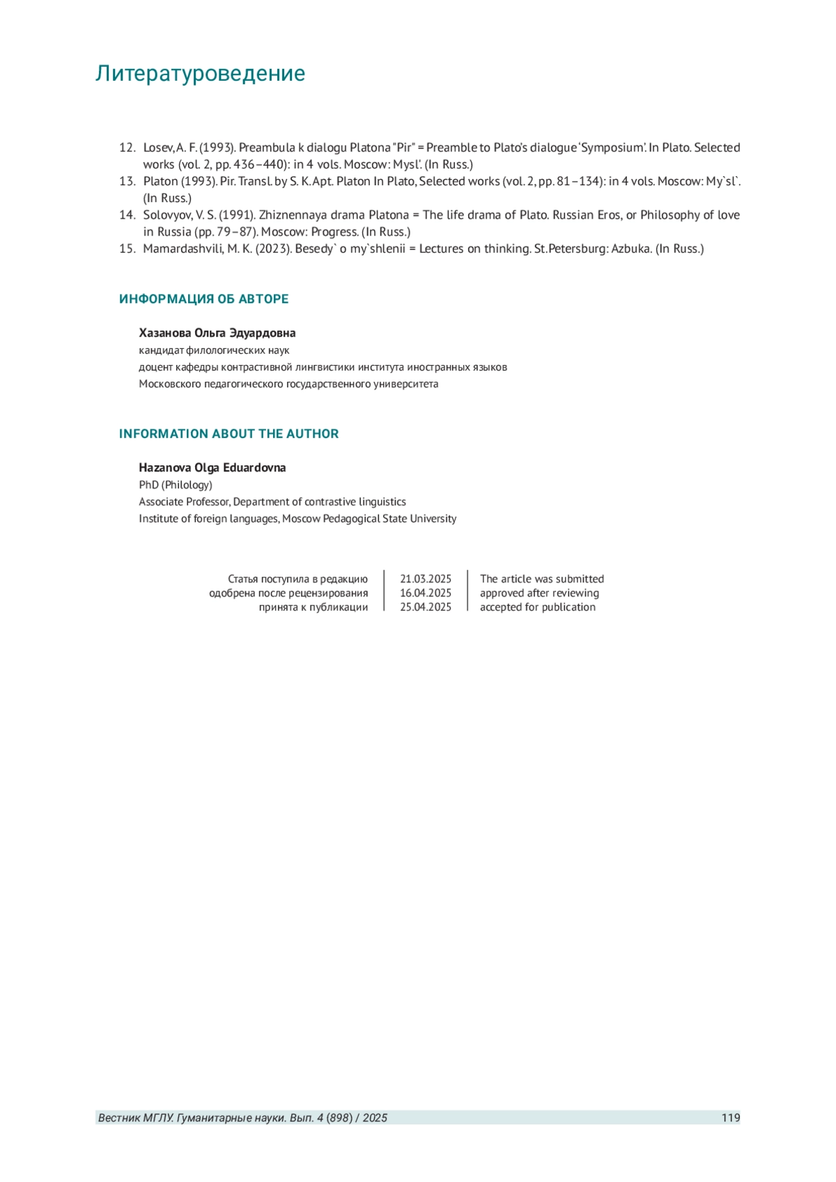 12. Лосев А. Ф. Преамбула к диалогу Платона “Пир” // Платон. Собр. соч.: в 4 т. М.: Мысль, 1993. Т. 2. С. 436-440.