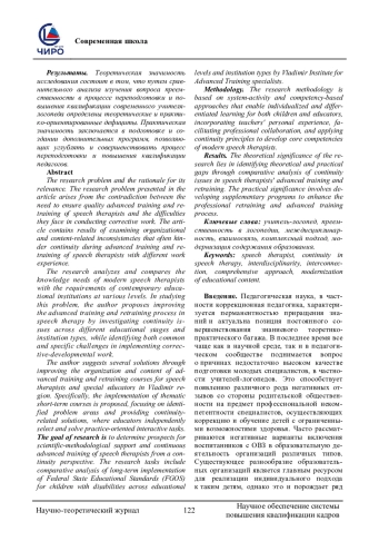 Педагогическая наука, в частности коррекционная педагогика, характеризуется перманентностью приращения знаний и актуальна позиция постоянного совершенствования знаниевого теоретикопрактического багажа.