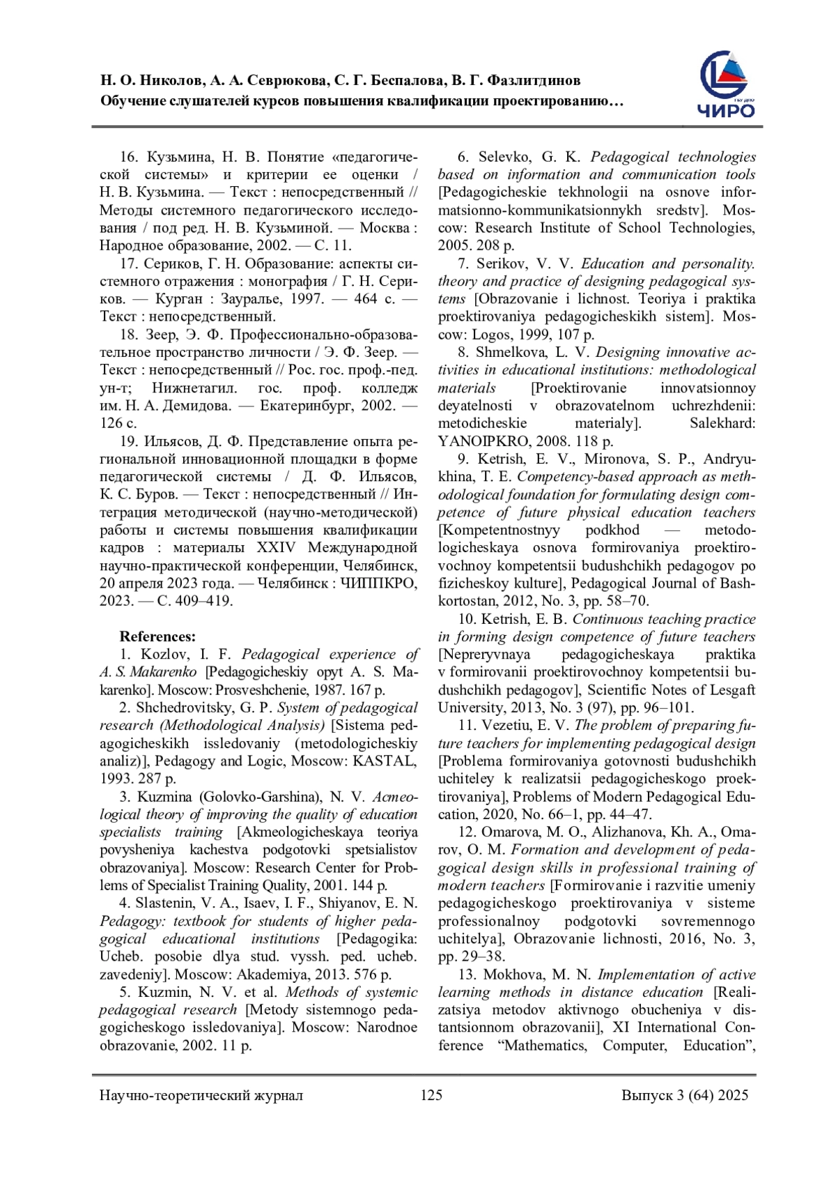 17. Сериков, Г. Н. Образование: аспекты системного отражения: монография / Г. Н. Сериков. - Курган: Зауралье, 1997. - 464 с. - Текст: непосредственный. EDN: ZSINJV