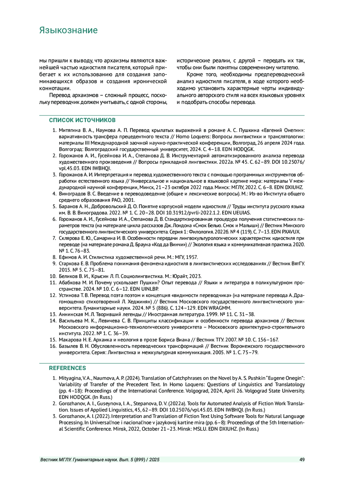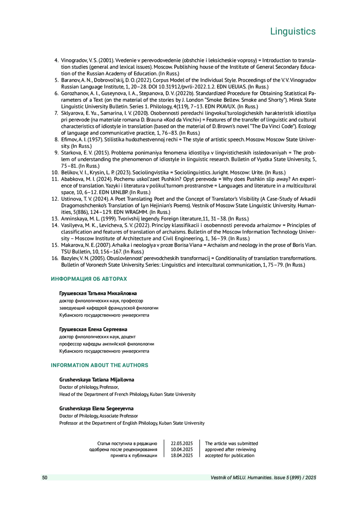Журнал: ВЕСТНИК МОСКОВСКОГО ГОСУДАРСТВЕННОГО ЛИНГВИСТИЧЕСКОГО УНИВЕРСИТЕТА. ГУМАНИТАРНЫЕ НАУКИ