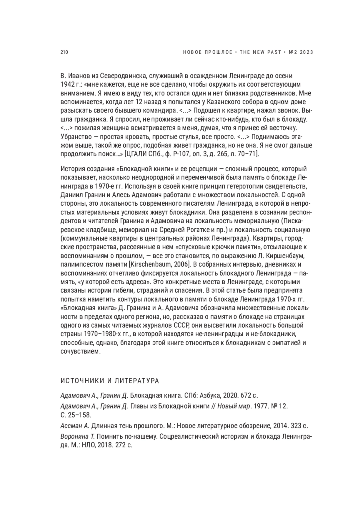 11. Павловский А.Ф. Культурная травма и современная историография: “Вторая волна” исследований памяти о блокаде Ленинграда (2016-2021) // Историческая экспертиза. 2022. № 1. С. 26-29.