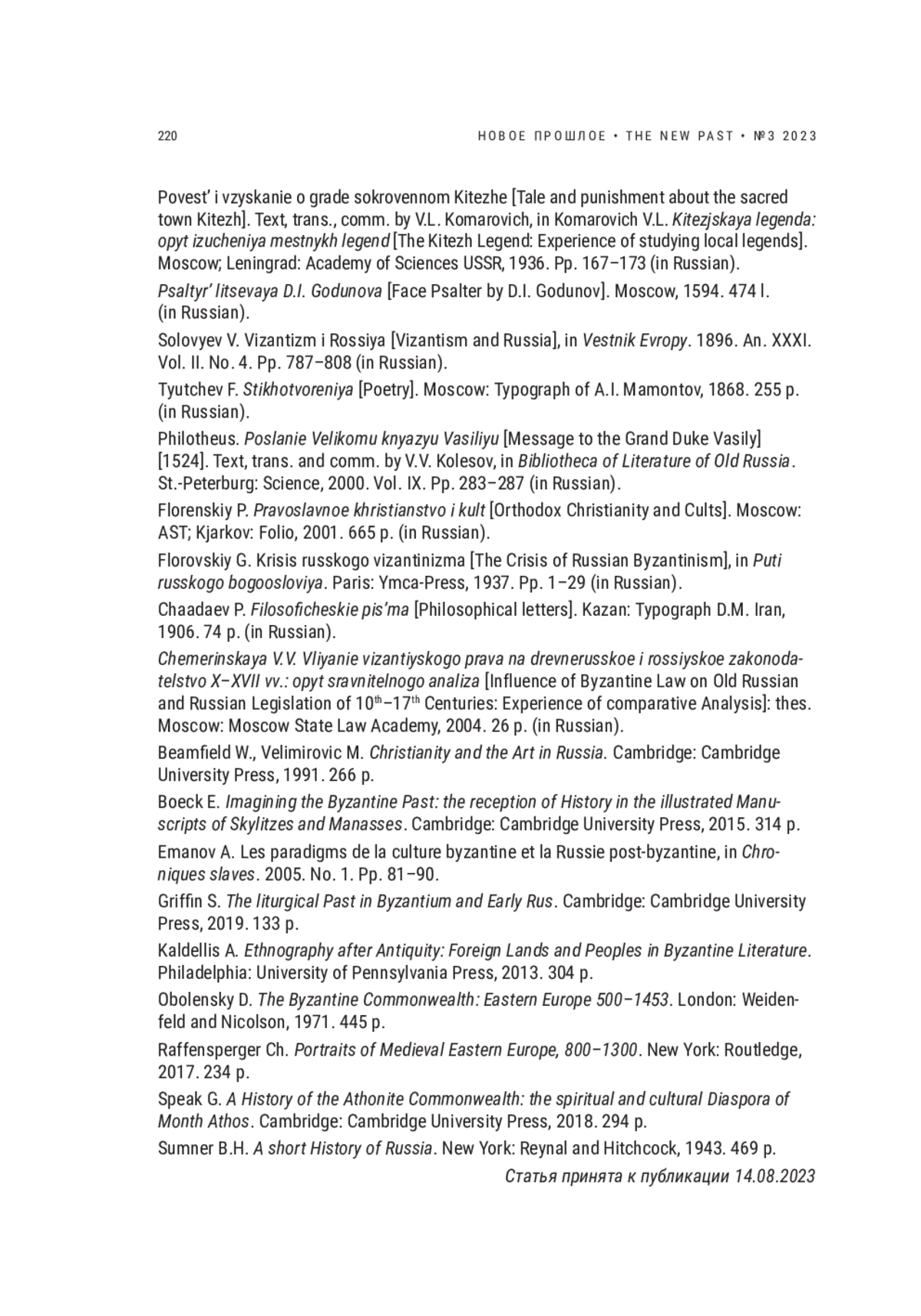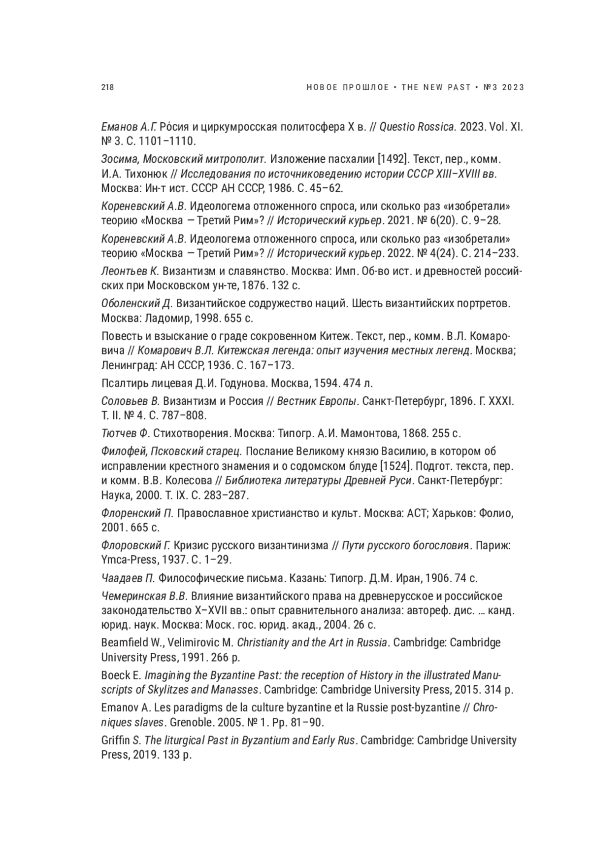 20. Emanov A. Les paradigms de la culture byzantine et la Russie post-byzantine. In Chroniques slaves. Grenoble, 2005. № 1. Pp. 81-90.