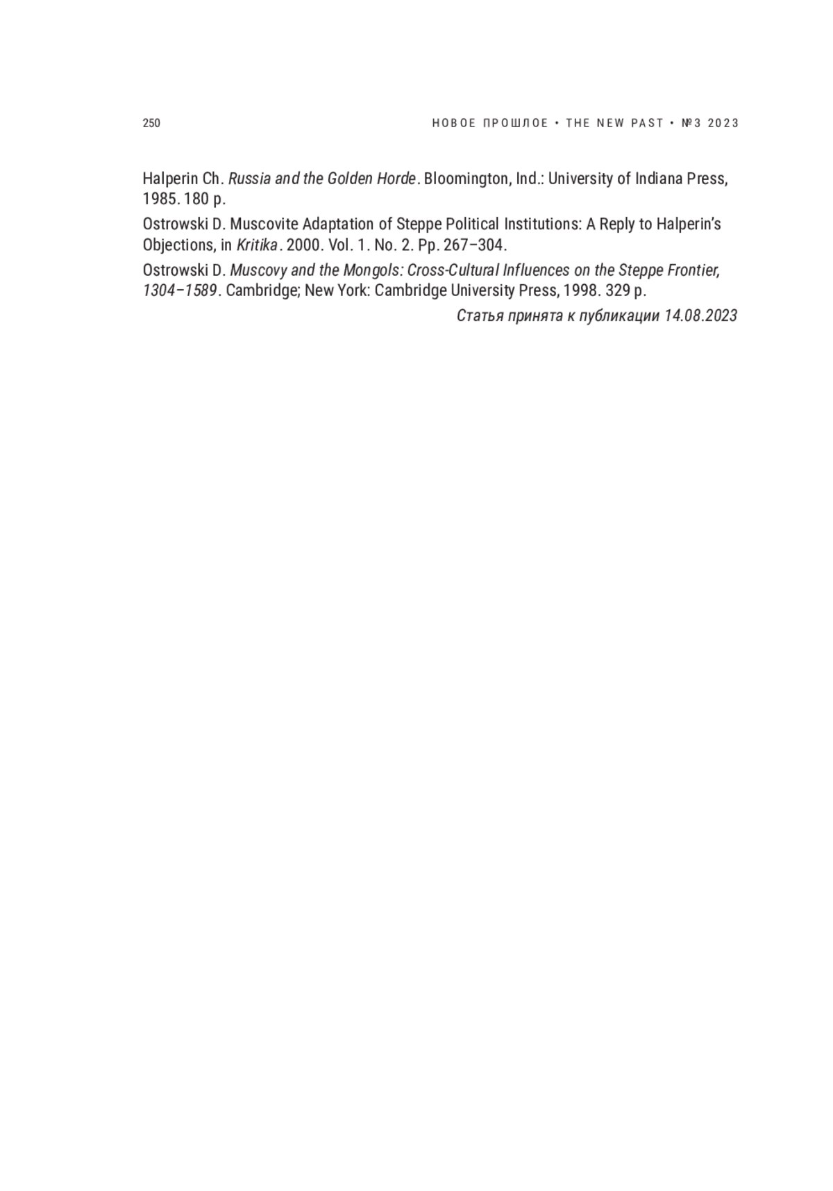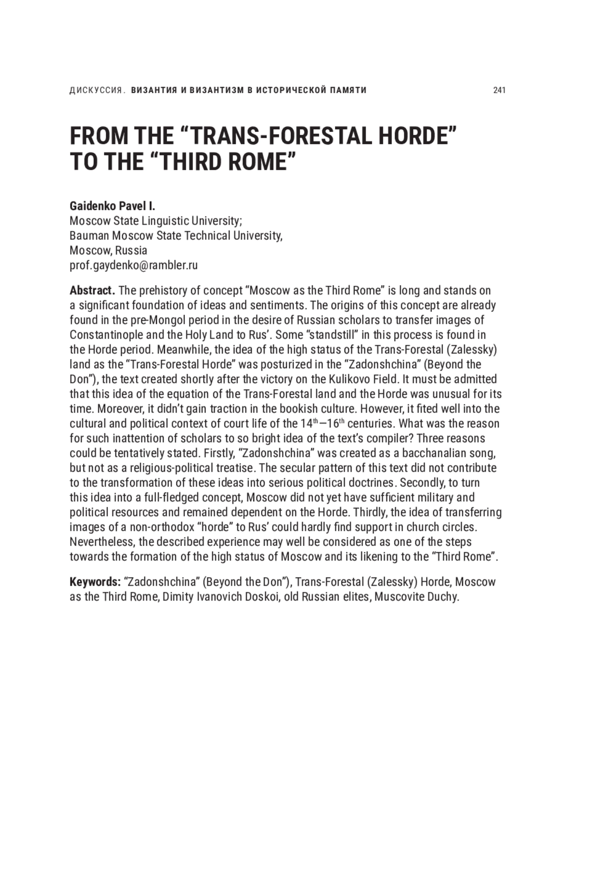 ГАЙДЕНКО П. И. ОТ "ОРДЫ ЗАЛЕССКОЙ" К "ТРЕТЬЕМУ РИМУ" // НОВОЕ ПРОШЛОЕ. 2023. № 3