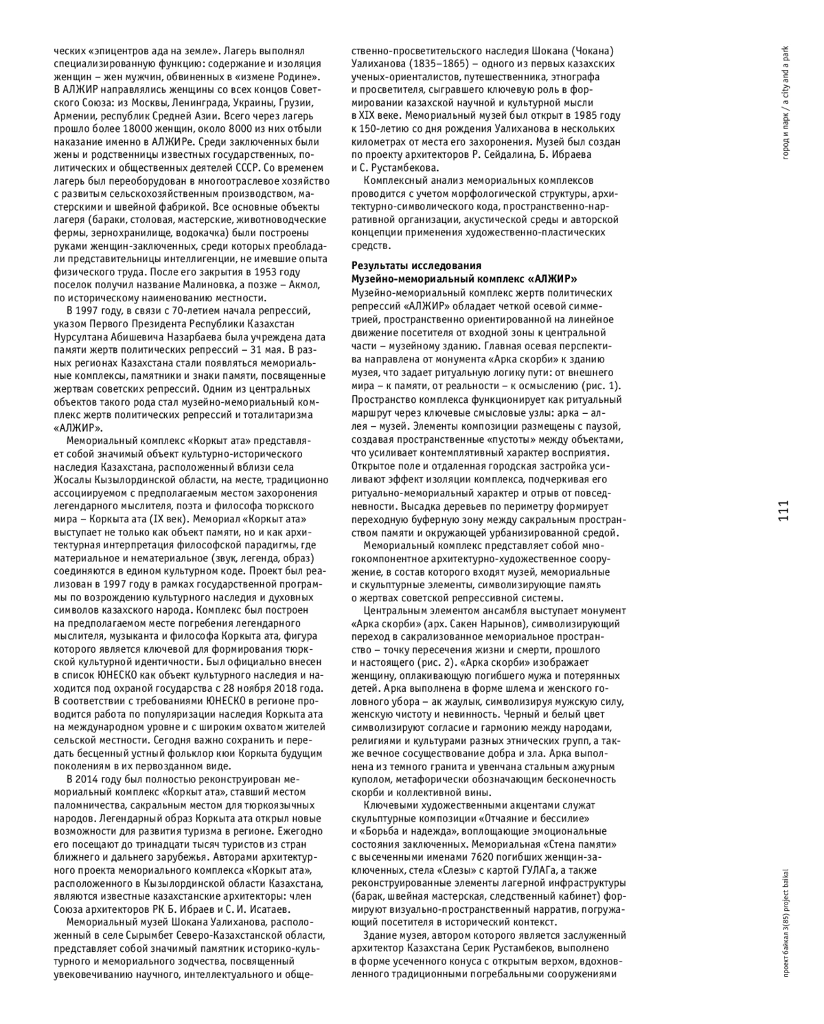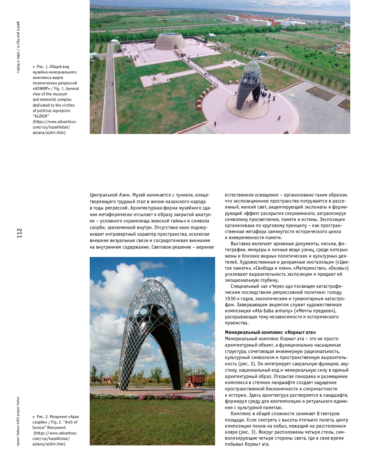 ДЮСЕНОВА Д., ОМУРАЛИЕВ Д., ХАСЕНОВ М., МАУЛЕНОВА Г. СЕМАНТИКА АРХИТЕКТУРНЫХ ОБРАЗОВ МЕМОРИАЛОВ КАЗАХСТАНА // ПРОЕКТ БАЙКАЛ. 2025. № 85, ТОМ 22