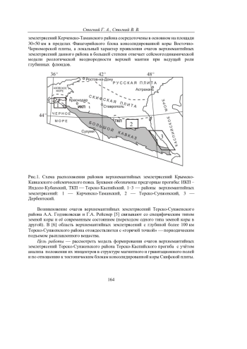 В пределах Крымско-Кавказского сейсмического пояса верхнемантийные землетрясения с М ≤ 4 и глубинами гипоцентров 70‒150 км формируют ряд районов. К хорошо изученным районам проявления верхнемантийных землетрясений следует отнести Керченско-Таманский, Терско-Сунженский и Дербентский, отличительной чертой тектонического положения которых является концентрация эпицентров землетрясений в прогибах земной коры.