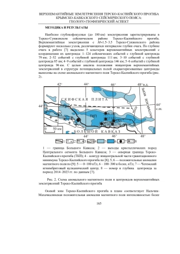 В пределах Крымско-Кавказского сейсмического пояса верхнемантийные землетрясения с М ≤4 и глубинами гипоцентров 70-150 км формируют Керченско-Таманский, Терско-Сунженский и Дербентский районы. Наиболее глубокофокусные (150-180 км) землетрясения зарегистрированы в Терско-Сунженском районе Терско-Каспийского прогиба. Проведен анализ положения эпицентров верхнемантийных землетрясений Терско-Сунженского района Терско-Каспийского прогиба в структуре магнитного и гравитационного полей и по отношению к тектоническим блокам консолидированной коры Скифской плиты. Формирование очагов глубокофокусных землетрясений предполагается в условиях мелкомасштабной конвекции мантии при локальном нарушении механического и термического равновесия и активизации флюидного потока.
