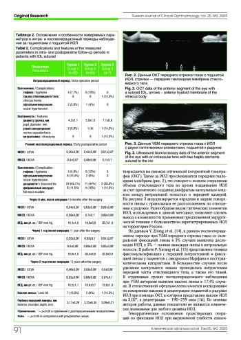 Результаты исследования: через 2 года после хирургического лечения катаракты с несостоятельностью связочного аппарата хрусталика при ультразвуковой биомикроскопии наблюдался наклон линзы (в группе 1 — в 13,5% случаев, в группе 2 — в 8%, в группе 3 — в 14,3%). МКОЗ составила 0,52±0,06, 0,68±0,05 и 0,87±0,1 соответственно.