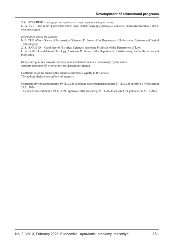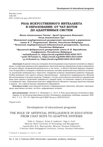 3. Коровникова Н. А. Искусственный интеллект в образовательном пространстве: проблемы и перспективы // Социальные новации и социальные науки. - Москва: ИНИОН РАН, 2021. - № 2. EDN: UYZSBM