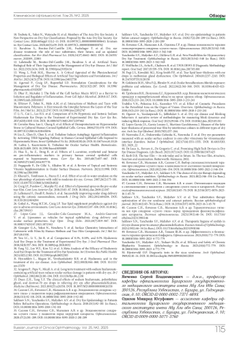 8. Wolffsohn J.S., Semp D.A., Dutta D. et al. Clinical practice patterns in the management of dry eye disease: A TFOS international survey 2023-24. Ocul Surf. 2025;36:164-172. DOI: 10.1016/j.jtos.2024.12.008