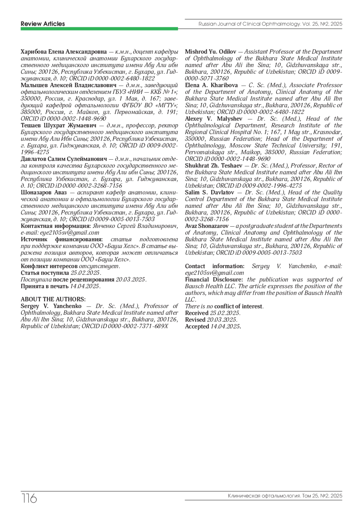 36. Янченко С.В., Малышев А.В., Одилова Г.Р. и др. Новые возможности терапии гипосекреторного синдрома “сухого глаза”. Офтальмология. 2023;20(3):542-548. DOI: 10.18008/1816-5095-2023-3-542-548