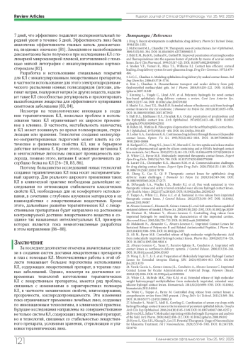 86. Zhao L., Song J., Du Y. et al. Therapeutic applications of contact lens-based drug delivery systems in ophthalmic diseases. Drug Deliv. 2023;30(1):2219419. DOI: 10.1080/10717544.2023.2219419