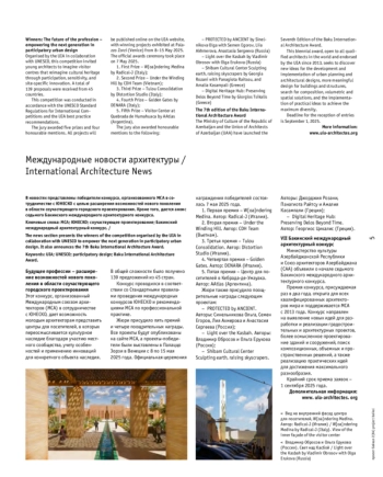 В новостях представлены победители конкурса, организованного МСА в сотрудничестве с ЮНЕСКО с целью расширения возможностей нового поколения в области соучаствующего городского проектирования. Кроме того, дается анонс седьмого Бакинского международного архитектурного конкурса.