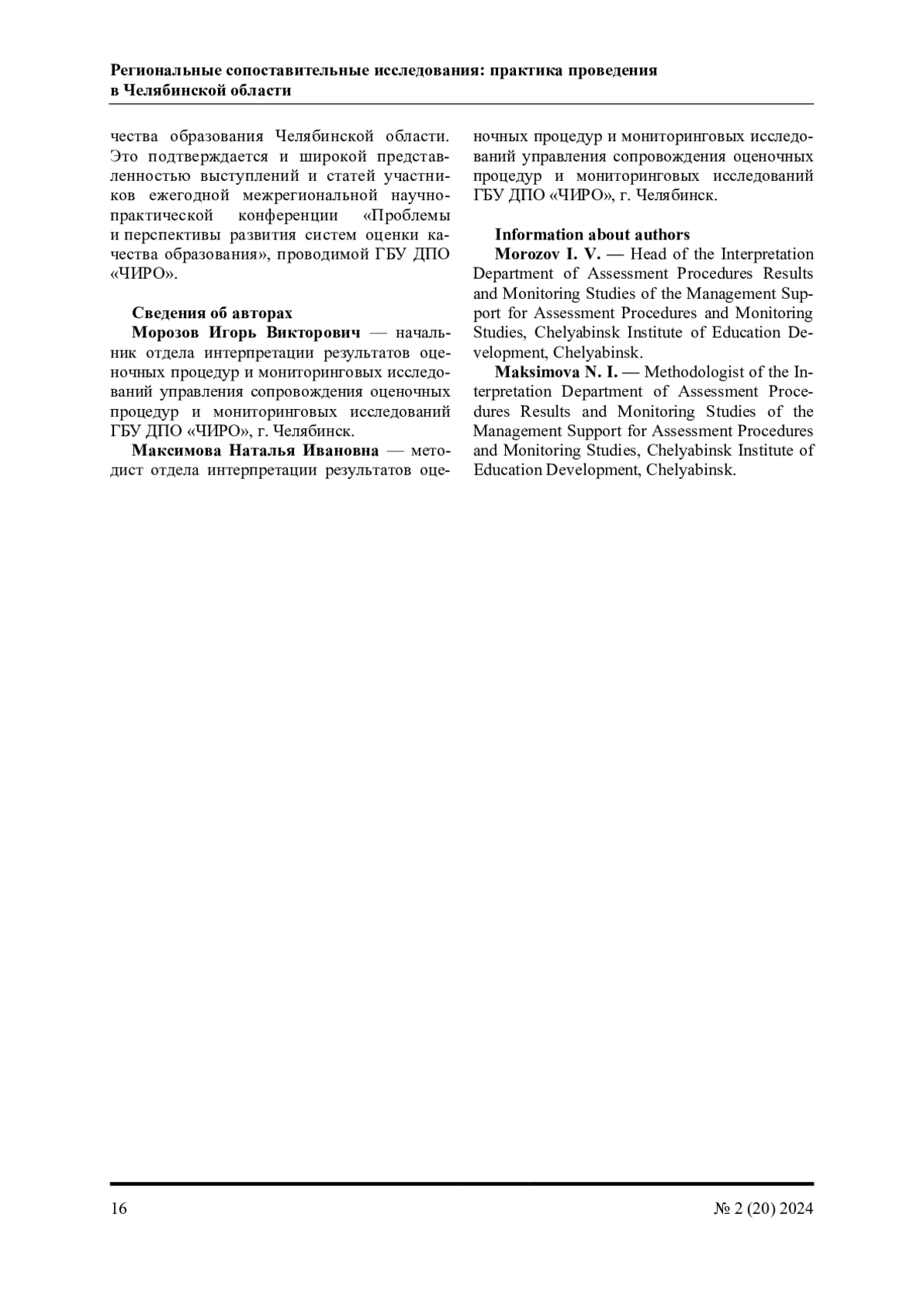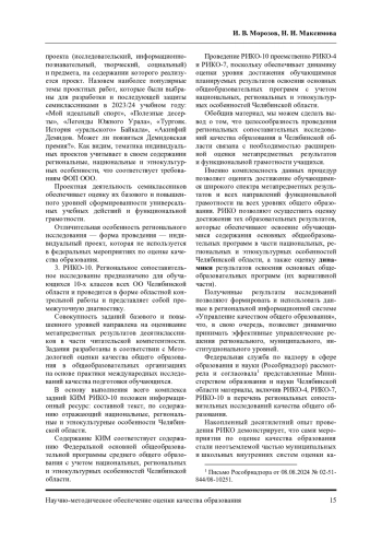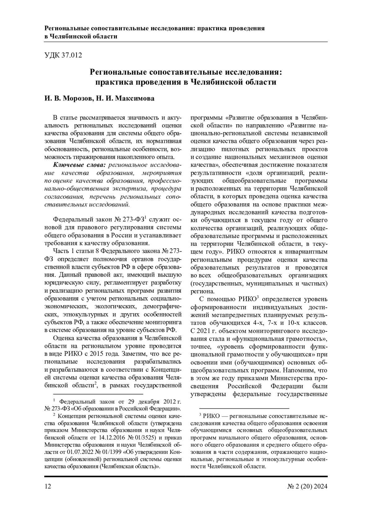 МОРОЗОВ И. В., МАКСИМОВА Н. И. РЕГИОНАЛЬНЫЕ СОПОСТАВИТЕЛЬНЫЕ ИССЛЕДОВАНИЯ: ПРАКТИКА ПРОВЕДЕНИЯ В ЧЕЛЯБИНСКОЙ ОБЛАСТИ // НАУЧНО-МЕТОДИЧЕСКОЕ ОБЕСПЕЧЕНИЕ ОЦЕНКИ КАЧЕСТВА ОБРАЗОВАНИЯ. 2024. № 2 (20)