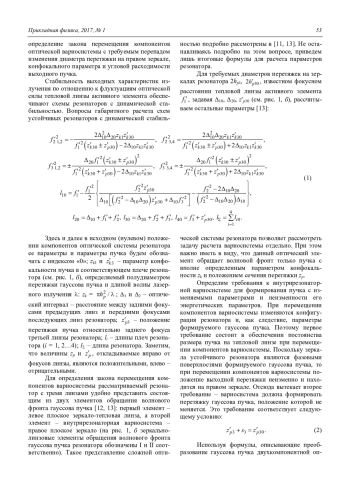 Ключевые фразы: твердотельный лазер, лазерный резонатор, устойчивый резонатор, тепловая линза, лазерное излучение, гауссов пучок, перетяжка, вариосистема