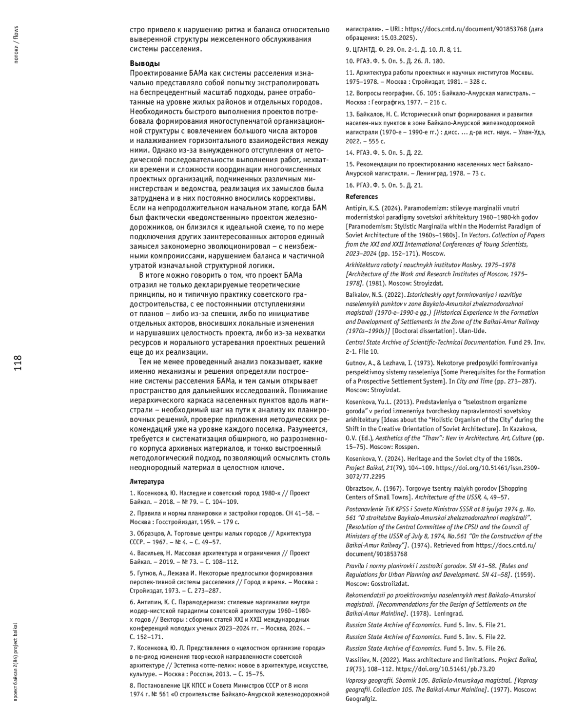 АНТИПИН К., КИСЕЛЬНИКОВА Д. ПРОЕКТИРОВАНИЕ СИСТЕМЫ РАССЕЛЕНИЯ БАМА В 1970-Е ГОДЫ // ПРОЕКТ БАЙКАЛ. 2025. № 84, ТОМ 22