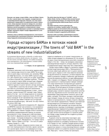САВЧЕНКО И. А. ГОРОДА «СТАРОГО БАМА» В ПОТОКАХ НОВОЙ ИНДУСТРИАЛИЗАЦИИ // ПРОЕКТ БАЙКАЛ. 2025. № 84, ТОМ 22