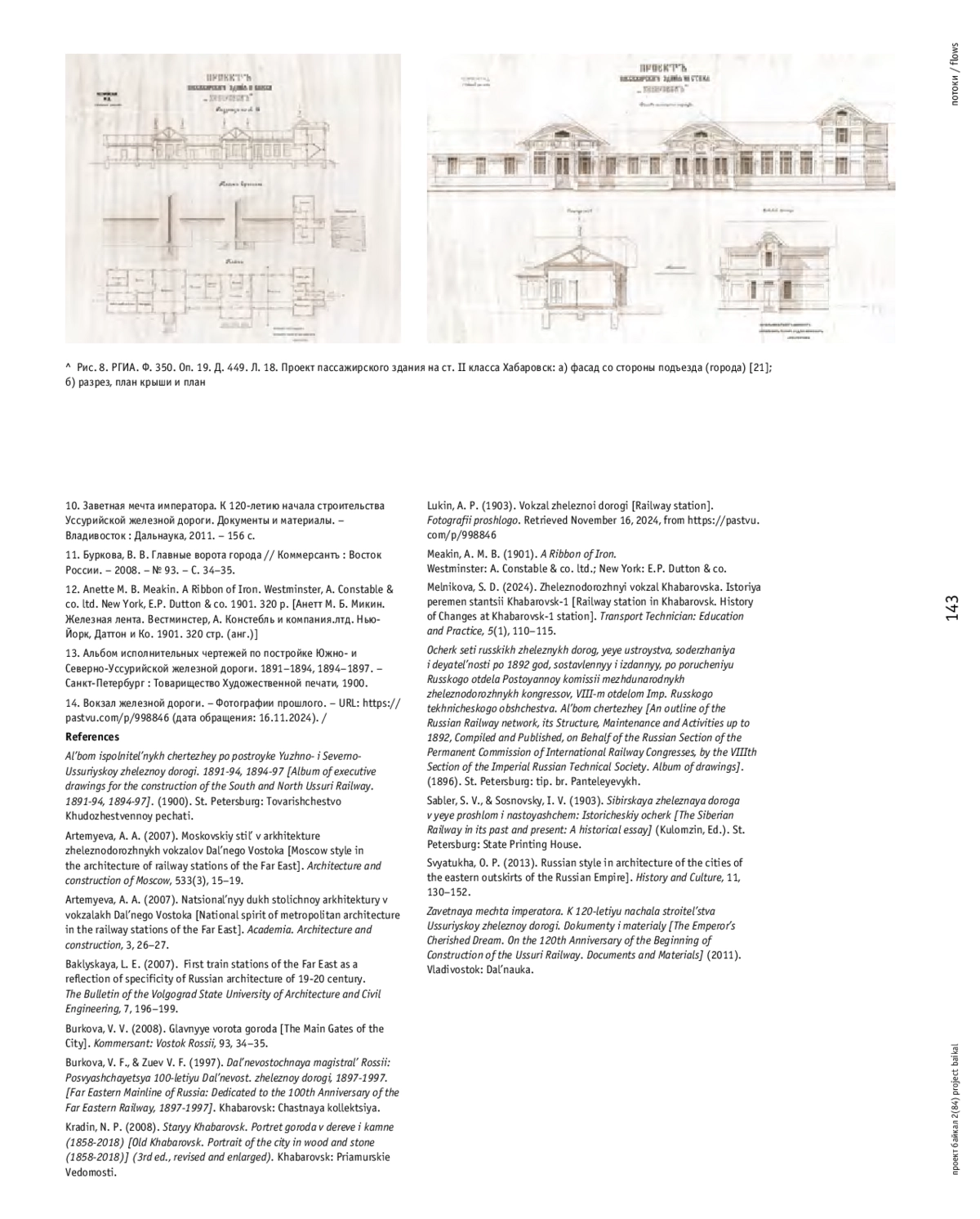 ГЛАТОЛЕНКОВА Е. В. АРХИТЕКТУРНЫЕ ОСОБЕННОСТИ ПЕРВОГО ВОКЗАЛА В ХАБАРОВСКЕ // ПРОЕКТ БАЙКАЛ. 2025. № 84, ТОМ 22