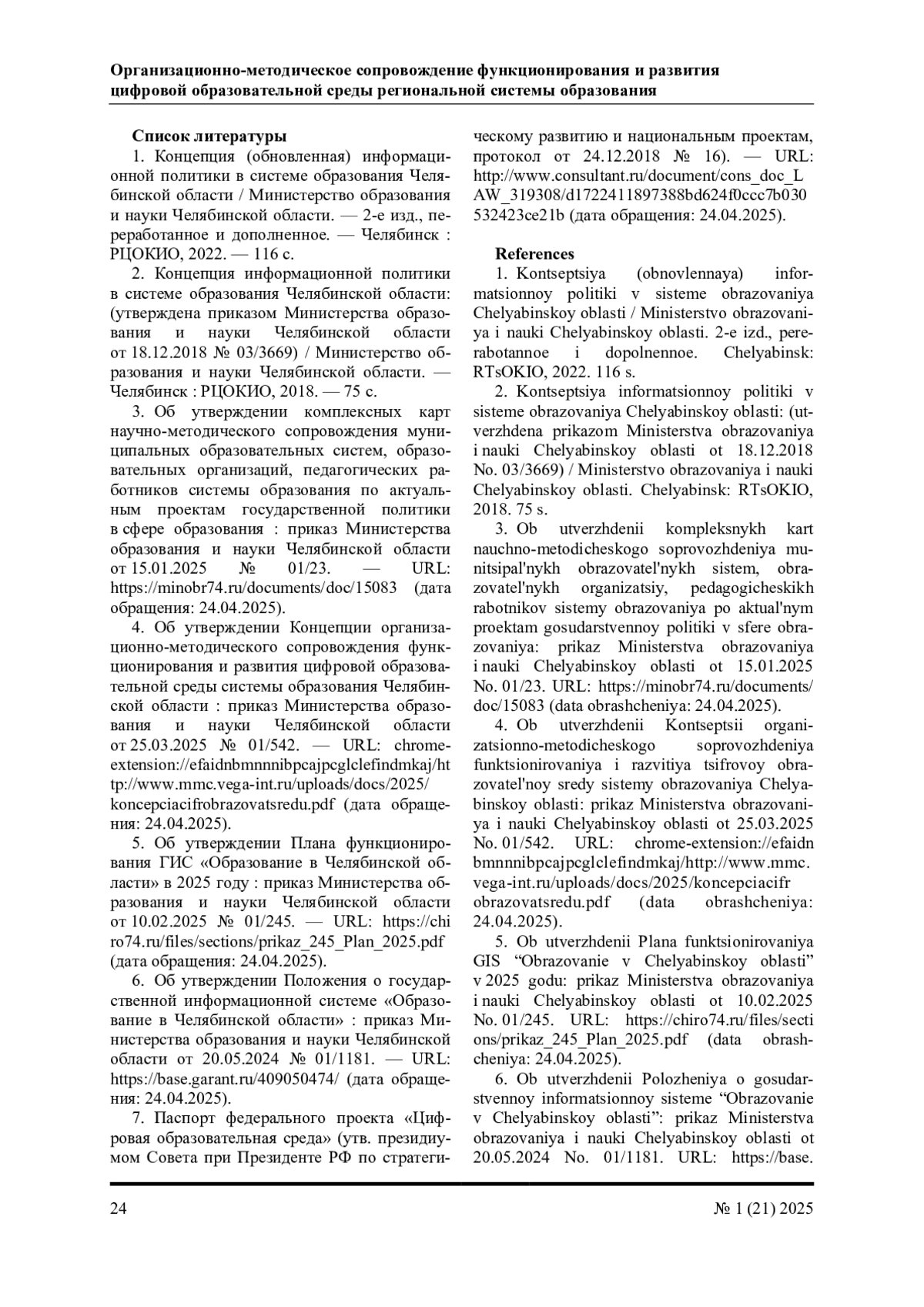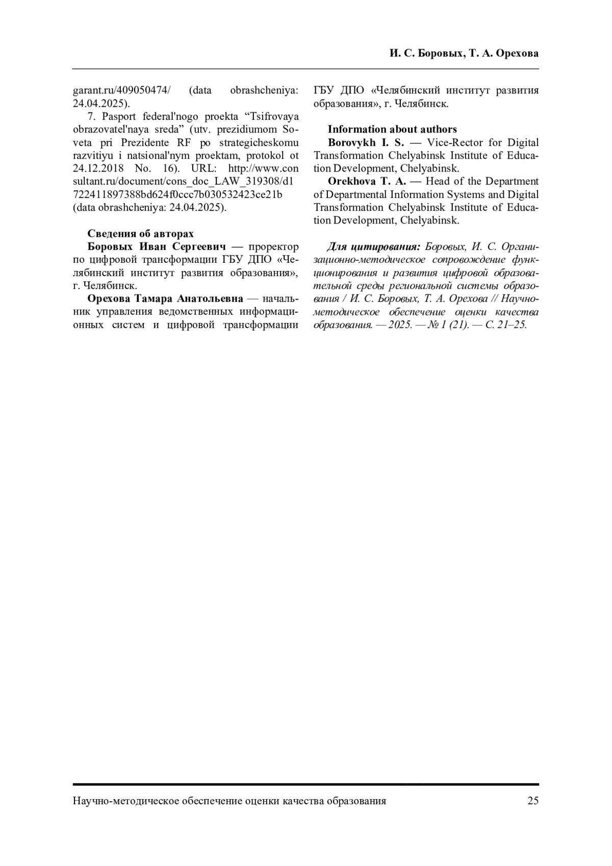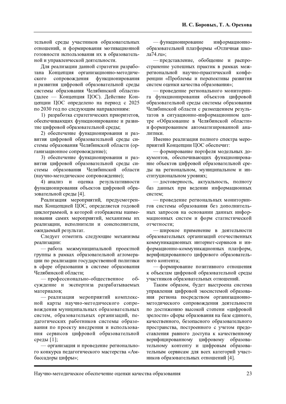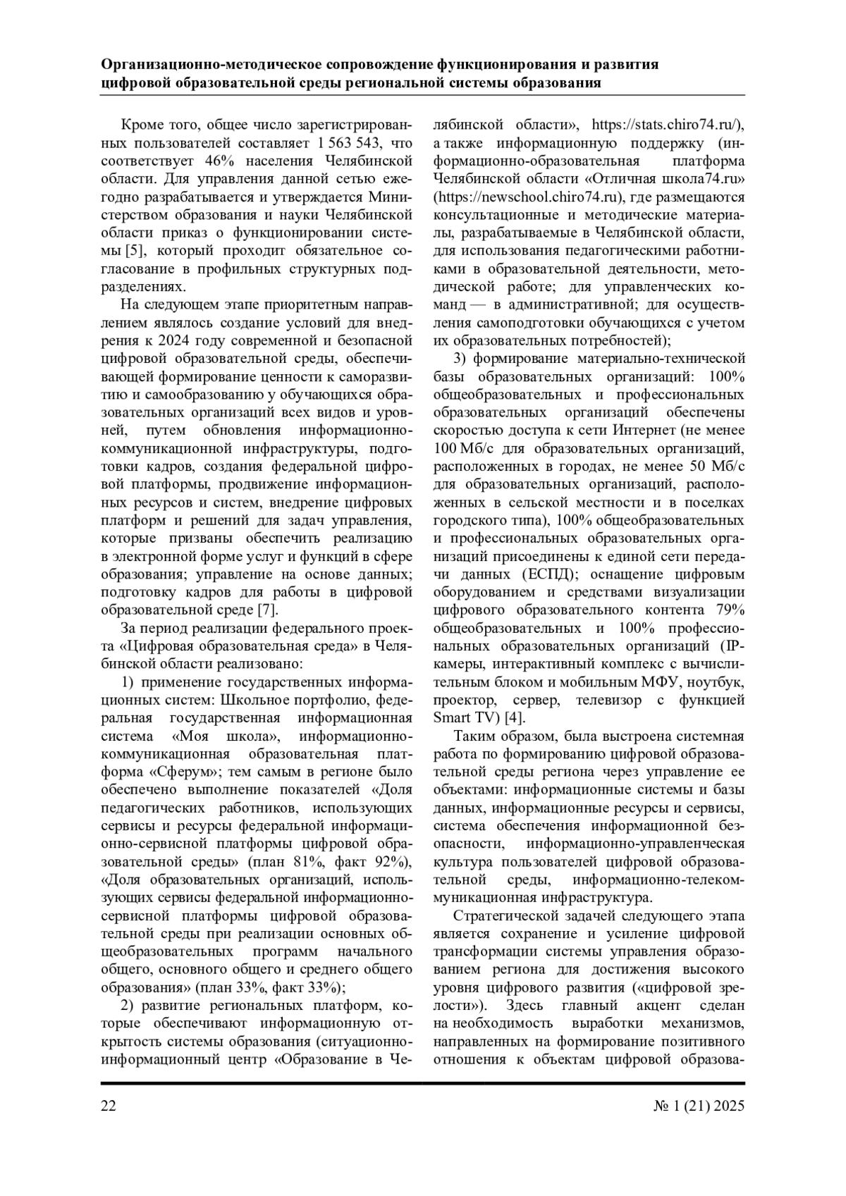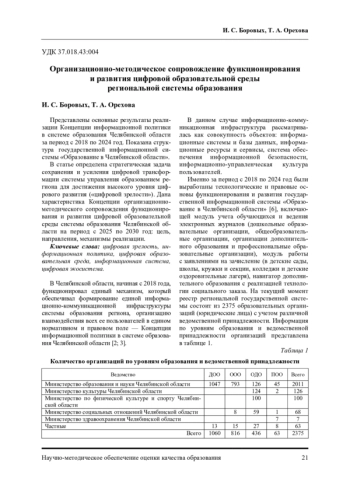 ОРЕХОВА Т. А., БОРОВЫХ И. С. ОРГАНИЗАЦИОННО-МЕТОДИЧЕСКОЕ СОПРОВОЖДЕНИЕ ФУНКЦИОНИРОВАНИЯ И РАЗВИТИЯ ЦИФРОВОЙ ОБРАЗОВАТЕЛЬНОЙ СРЕДЫ РЕГИОНАЛЬНОЙ СИСТЕМЫ ОБРАЗОВАНИЯ // НАУЧНО-МЕТОДИЧЕСКОЕ ОБЕСПЕЧЕНИЕ ОЦЕНКИ КАЧЕСТВА ОБРАЗОВАНИЯ. 2025. № 1 (21)