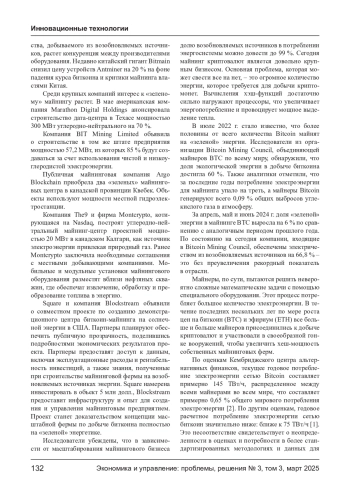 Статья: МАЙНИНГ КРИПТОВАЛЮТЫ С ИСПОЛЬЗОВАНИЕМ «ЗЕЛЕНОЙ» ЭЛЕКТРОЭНЕРГИИ (2025)