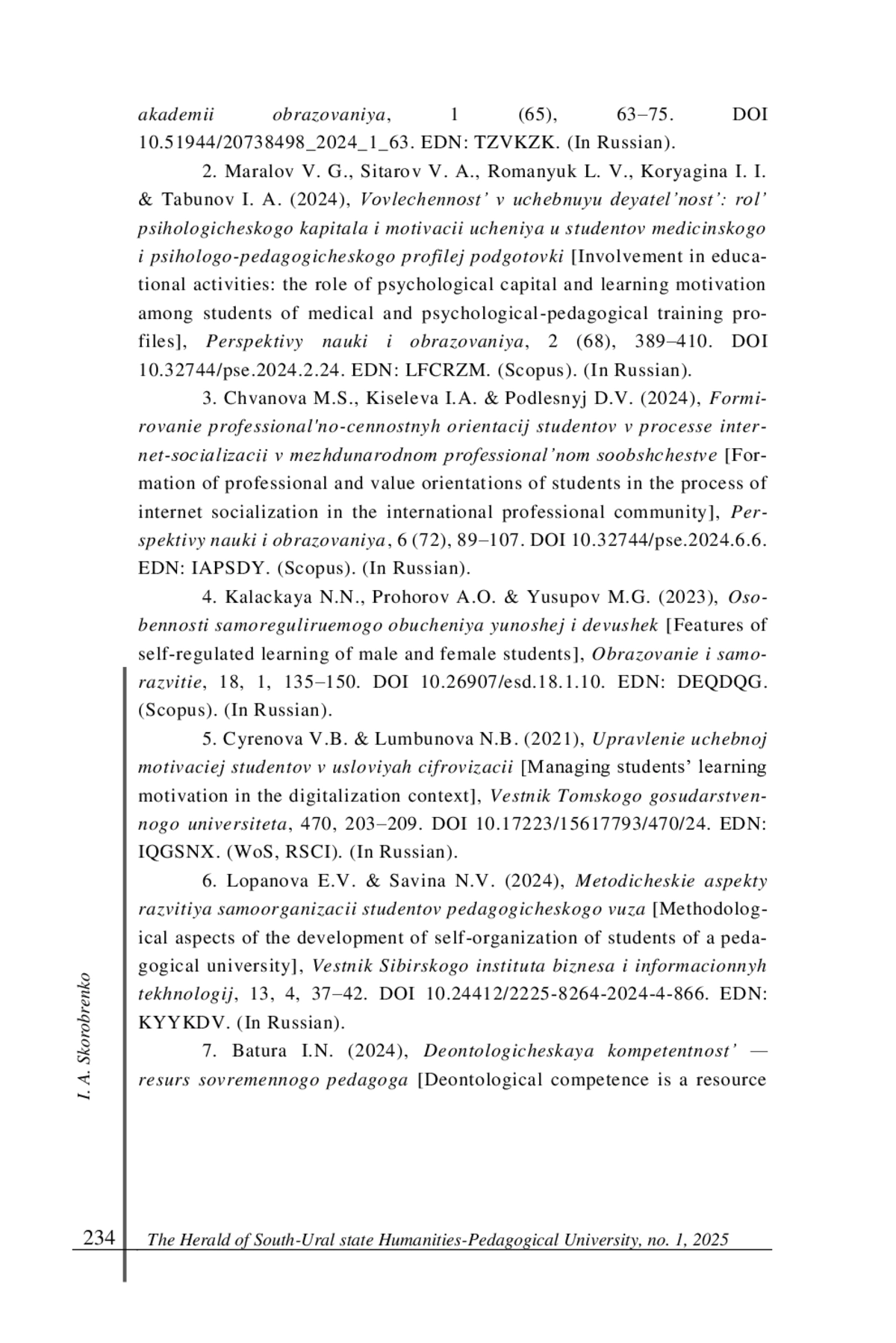 6. Лопанова Е. В., Савина Н. В. Методические аспекты развития самоорганизации студентов педагогического вуза // Вестник Сибирского института бизнеса и информационных технологий. 2024. Т. 13, № 4. С. 37-42. DOI: 10.24412/2225-8264-2024-4-866 EDN: KYYKDV