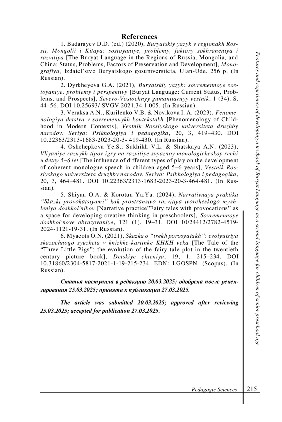 2. Дырхеева Г. А. Бурятский язык: современное состояние, проблемы и перспективы // Северо-Восточный гуманитарный вестник. 2021. № 1 (34). С. 44-56. 10.25693/ SVGV.2021.34.1.005. DOI: 10.25693/SVGV.2021.34.1.005 EDN: QYMCEF