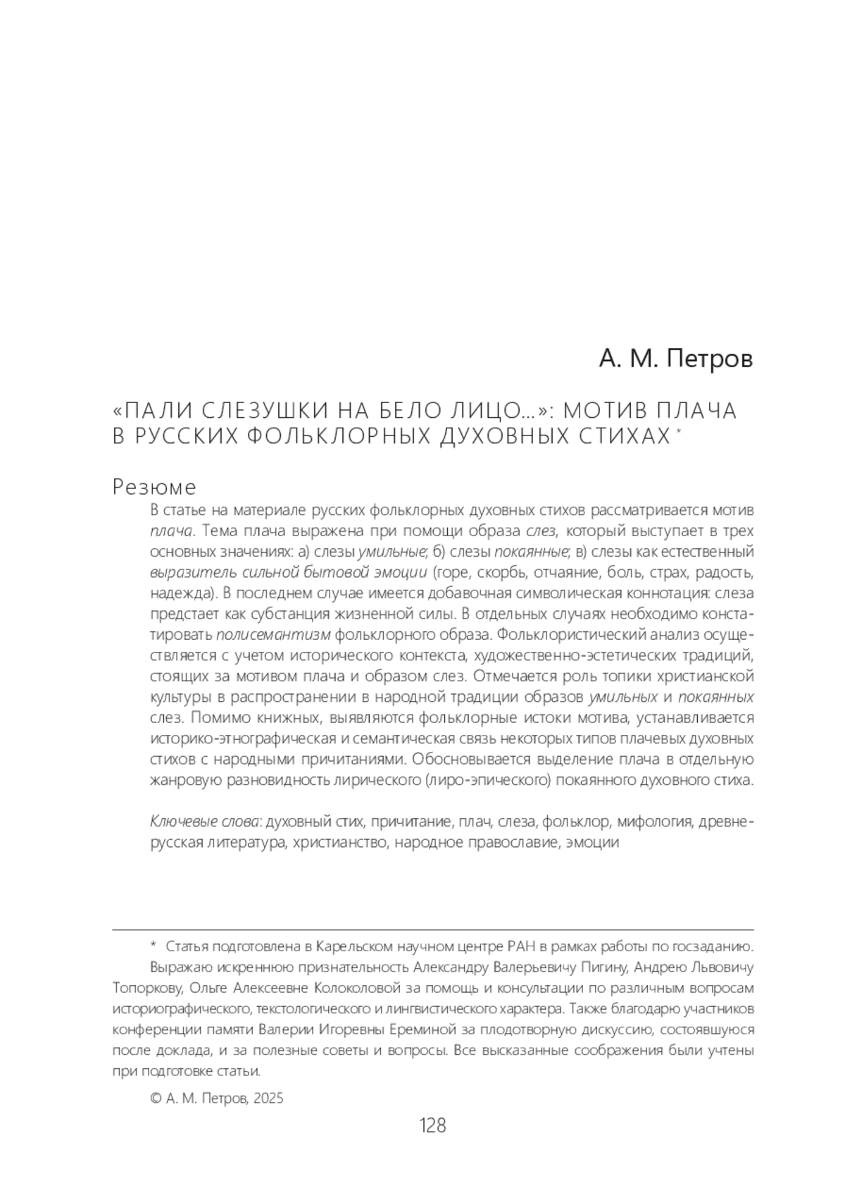 22. Петров А. М. Очерк поэтики русских духовных стихов: символика аквати ческих образов // Вестник Томского государственного университета. Сер.: Филология. 2021. № 69. С. 281-297.