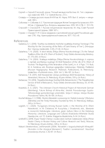 9. Легких В. И. Венгры среди русских святых: Служба на успение прп. Ефрема Новоторжского // Słowianie w monarchii Habsburgów: Literatura, język, kultura / Red. M. Čistiakova, M. Kuczyńska, J. Stradomski. Kraków: Księgarnia Akademicka, 2020. S. 9-34. (Krakowsko-Wileńskie Studia Slawistyczne; Т. 17).