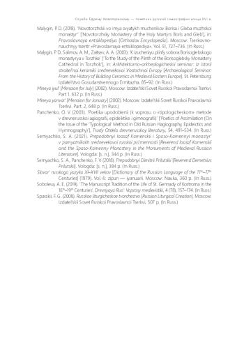 27. Семячко С. А. Преподобный Иоасаф Каменский и Спасо-Каменный мона стырь в памятниках средневековой русской письменности. Вологда: [б. и.], 2021. 344 с.