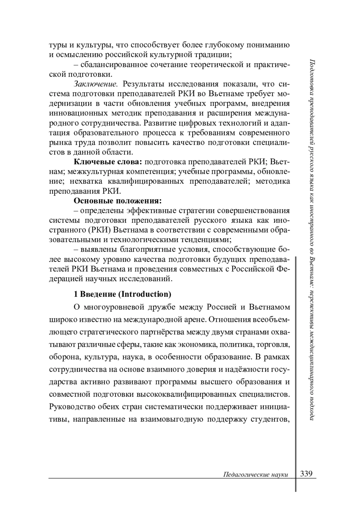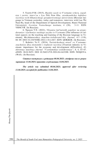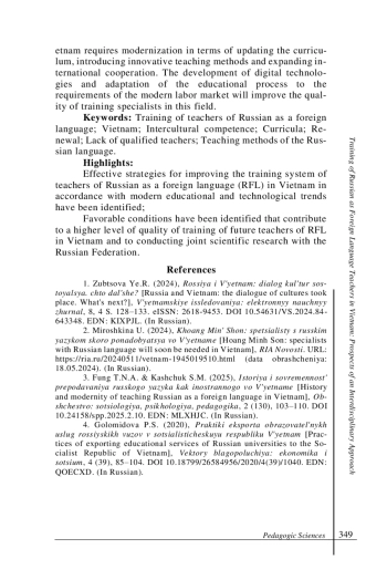 Статья: ПОДГОТОВКА ПРЕПОДАВАТЕЛЕЙ РУССКОГО ЯЗЫКА КАК ИНОСТРАННОГО ВО ВЬЕТНАМЕ: ПЕРСПЕКТИВЫ МЕЖДИСЦИПЛИНАРНОГО ПОДХОДА (2025)