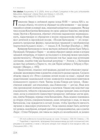 КОСЬЯНЕНКО Н. Е. АМУР КАК СПУТНИК ПОЭТА В ЛИРИКЕ КОНСТАНТИНА БАТЮШКОВА // СЛОВЕСНОСТЬ И ИСТОРИЯ. 2025. № 3