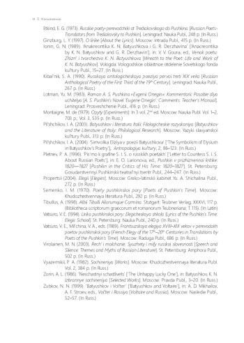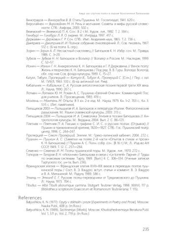 Статья посвящена одному из частотных в поэзии К. Н. Батюшкова топосов европейской литературы — образу Амура, античного бога любви. Внимательное прочтение и сопоставление текстов русского поэта с элегиями Тибулла, Проперция и Парни, лирикой Петрарки, произведениями Вольтера и русских поэтов XVIII века, а также с «Опытами» Монтеня демонстрирует преемственность между большой литературной традицией Запада и стихами Батюшкова. В то же время поэт существенно переосмысляет мотивы, унаследованные им от предшественников: лирика Батюшкова устанавливает нерасторжимую связь между любовью и поэзией, так что Купидон оказывается неизменным спутником поэта и связывает его не только с возлюбленной, но и с тенями стихотворцев, которые воспевали радости любви