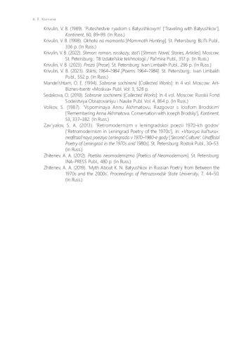 Статья: ПУТЕШЕСТВИЯ РЯДОМ С БАТЮШКОВЫМ: К ВОПРОСУ ЛИТЕРАТУРНОЙ ИДЕНТИЧНОСТИ ВИКТОРА КРИВУЛИНА В 1970-Е ГГ (2025)