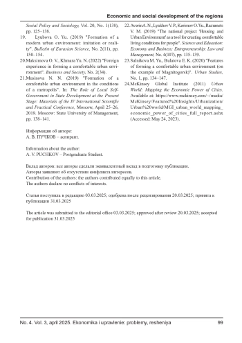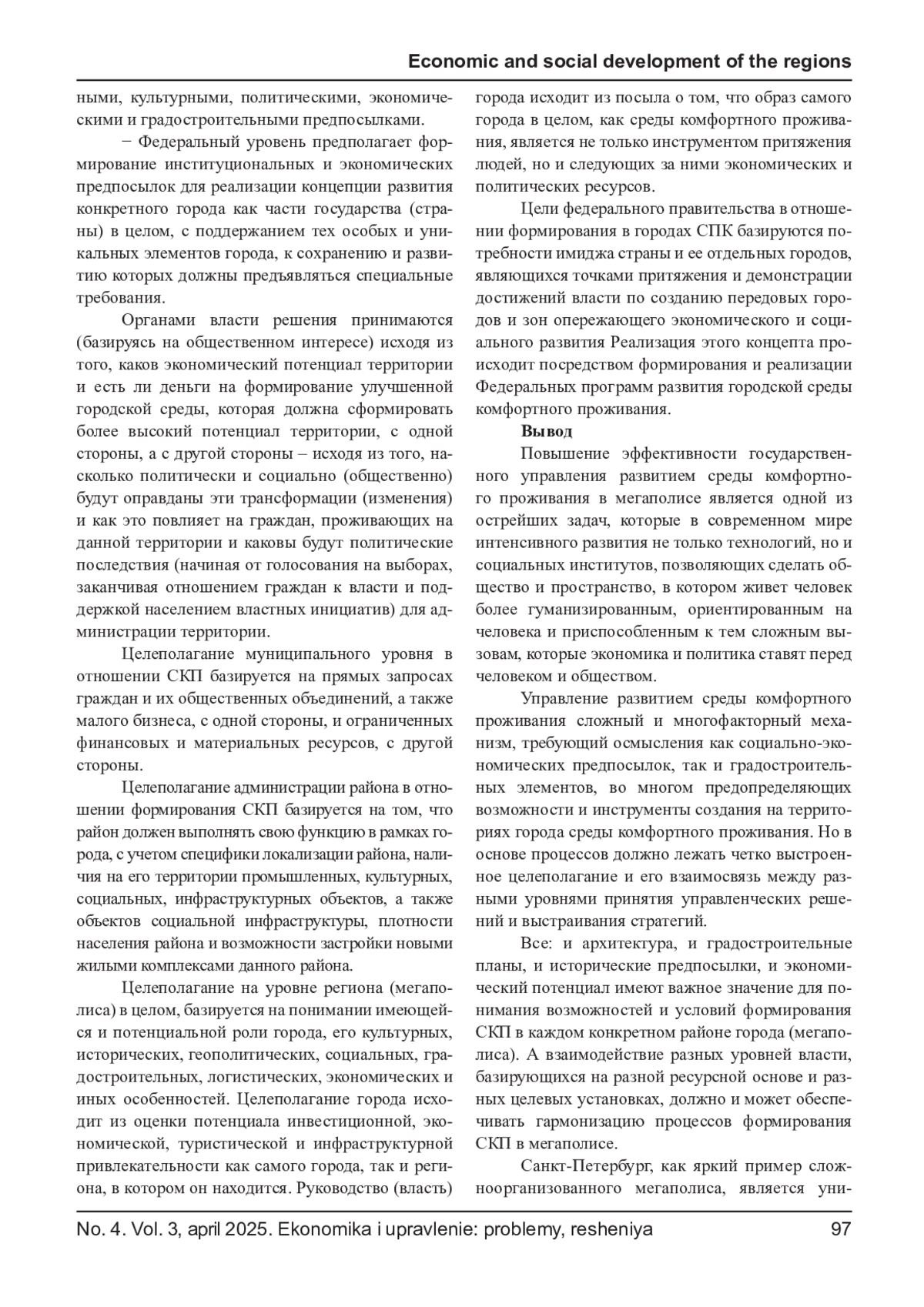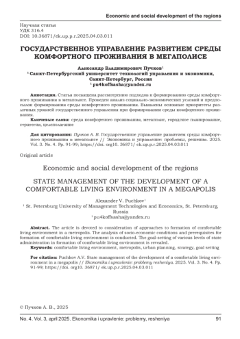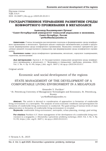 ПУЧКОВ А. В. ГОСУДАРСТВЕННОЕ УПРАВЛЕНИЕ РАЗВИТИЕМ СРЕДЫ КОМФОРТНОГО ПРОЖИВАНИЯ В МЕГАПОЛИСЕ // ЭКОНОМИКА И УПРАВЛЕНИЕ: ПРОБЛЕМЫ, РЕШЕНИЯ. 2025. ТОМ 3 № 4