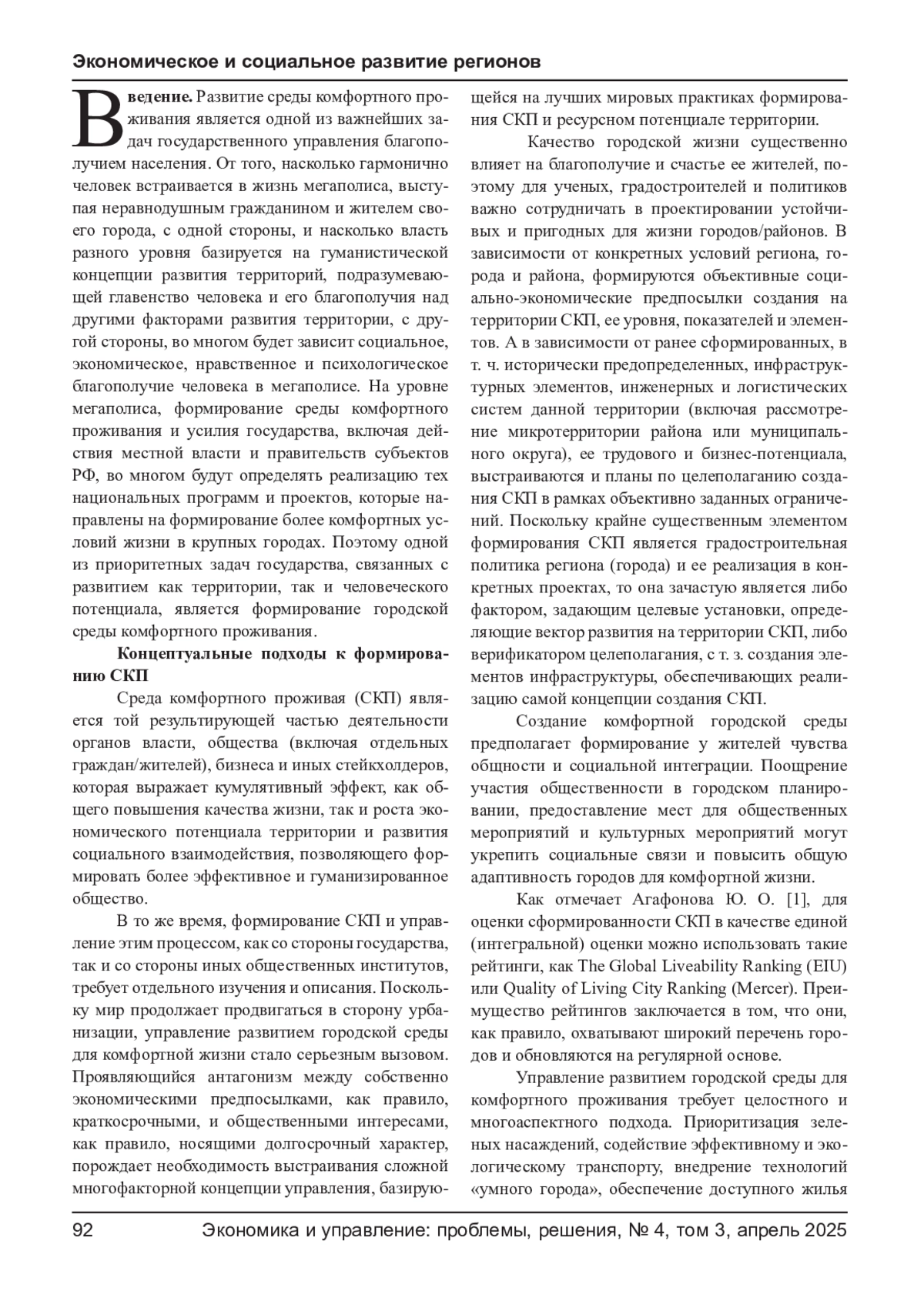 Статья: ГОСУДАРСТВЕННОЕ УПРАВЛЕНИЕ РАЗВИТИЕМ СРЕДЫ КОМФОРТНОГО ПРОЖИВАНИЯ В МЕГАПОЛИСЕ (2025)