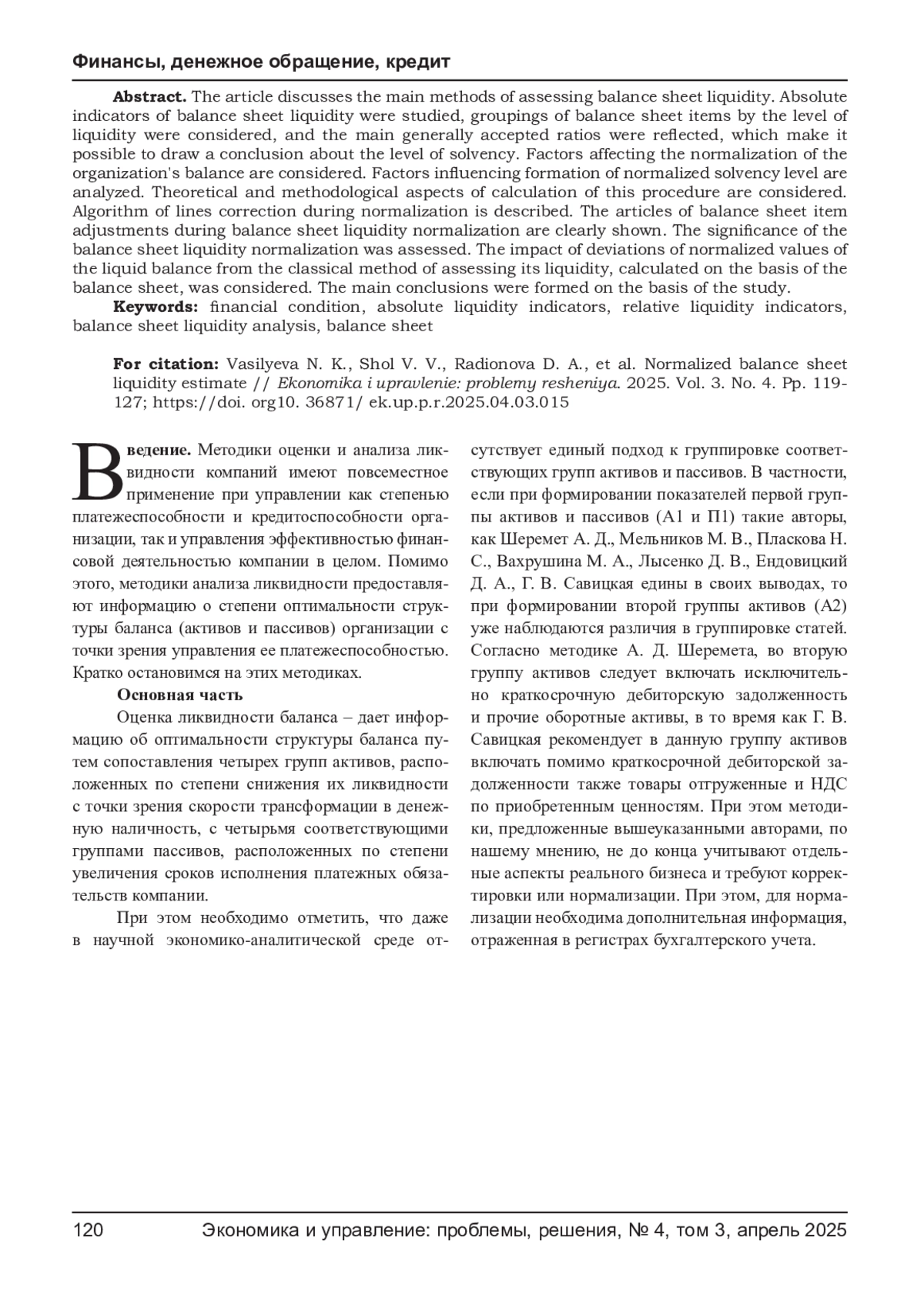 4. Васильева Н. К., Шоль В. В., Шоль Ю. Н. Современные направления анализа финансовой устойчивости организаций // Вестник Академии знаний. - 2019. - № 30 (1). - С. 40-45. -. EDN: EIAFLR