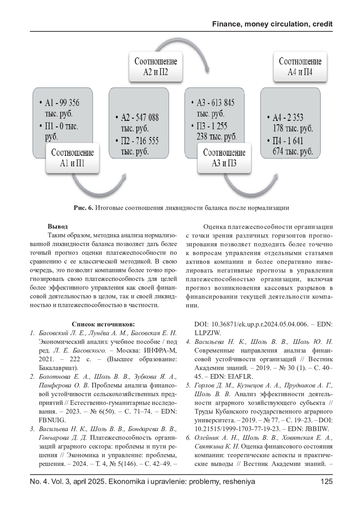 6. Олейник А. Н., Шоль В. В., Ховятская Е. А., Святкина К. Н. Оценка финансового состояния компании: теоретические аспекты и практические выводы // Вестник Академии знаний. - 2024. - № 1(60). - С. 265-267. -. EDN: YBTPJP