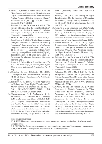 35. Темников А. О. Современные подходы к определению термина “Цифровая трансформация” // Современные аспекты экономики. - 2023. - Т. 22, № 28. - 10.23672/SAE.2023.22.28.001. - УДК 65.011.56. (дата обращения: 29.01.2025). DOI: 10.23672/SAE.2023.22.28.001.-